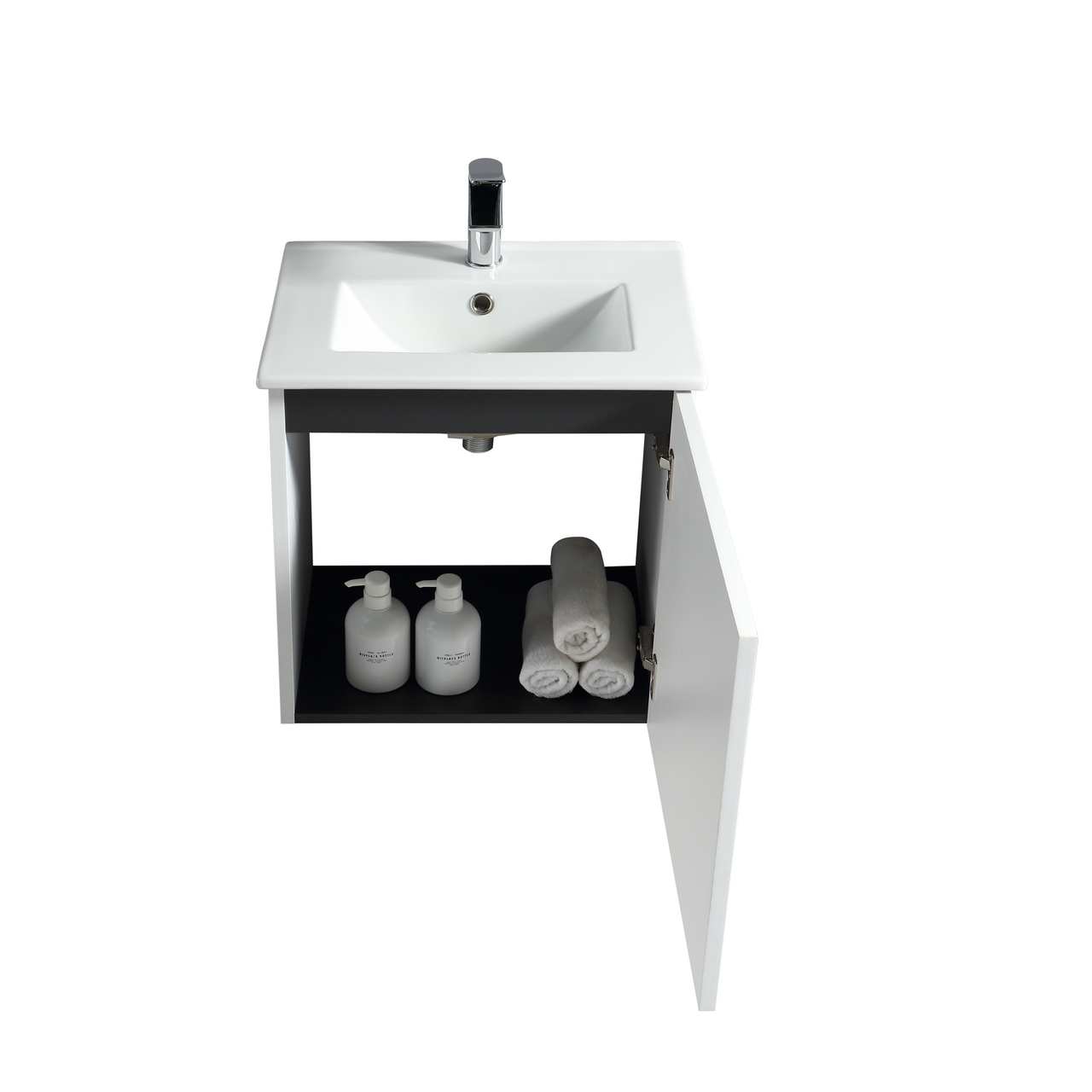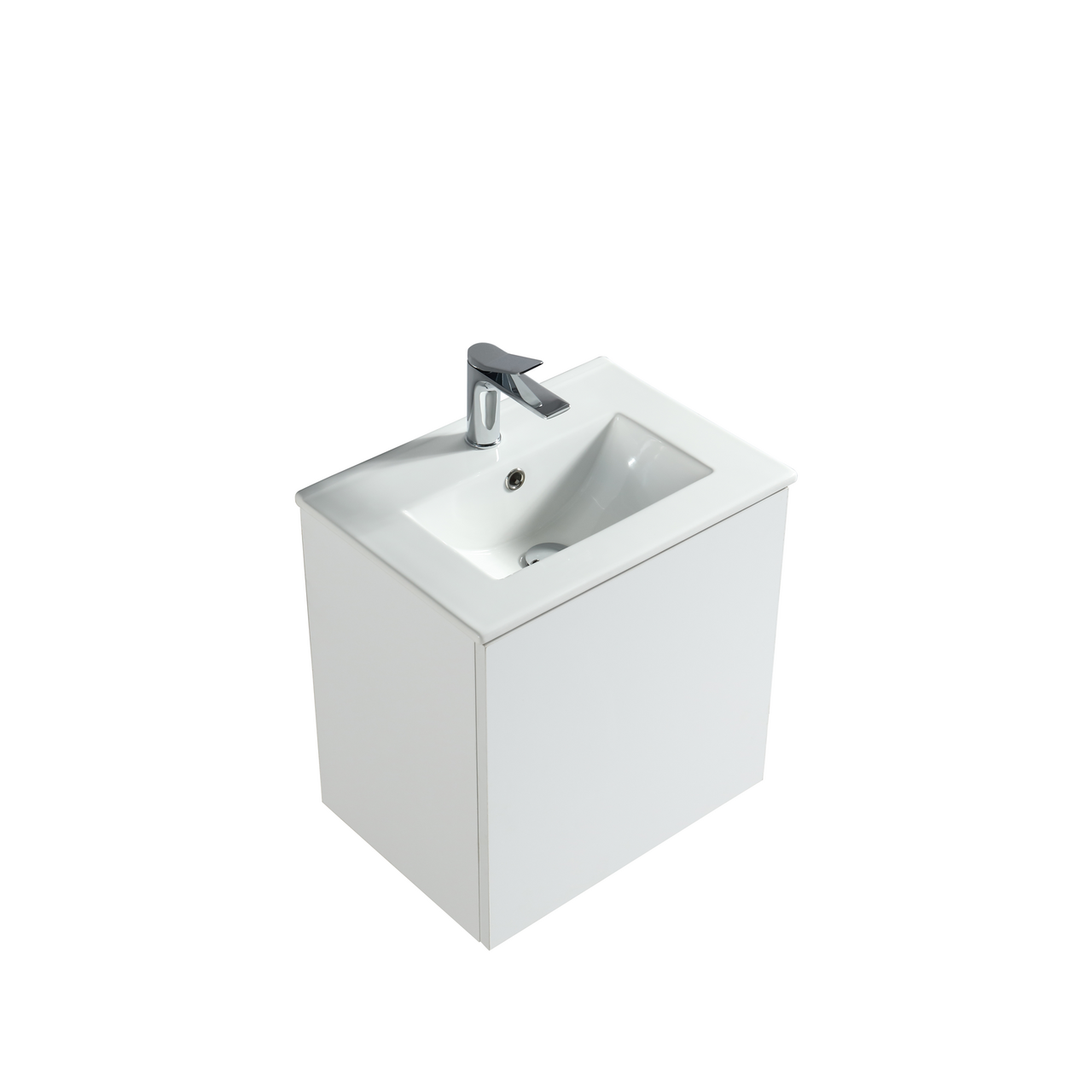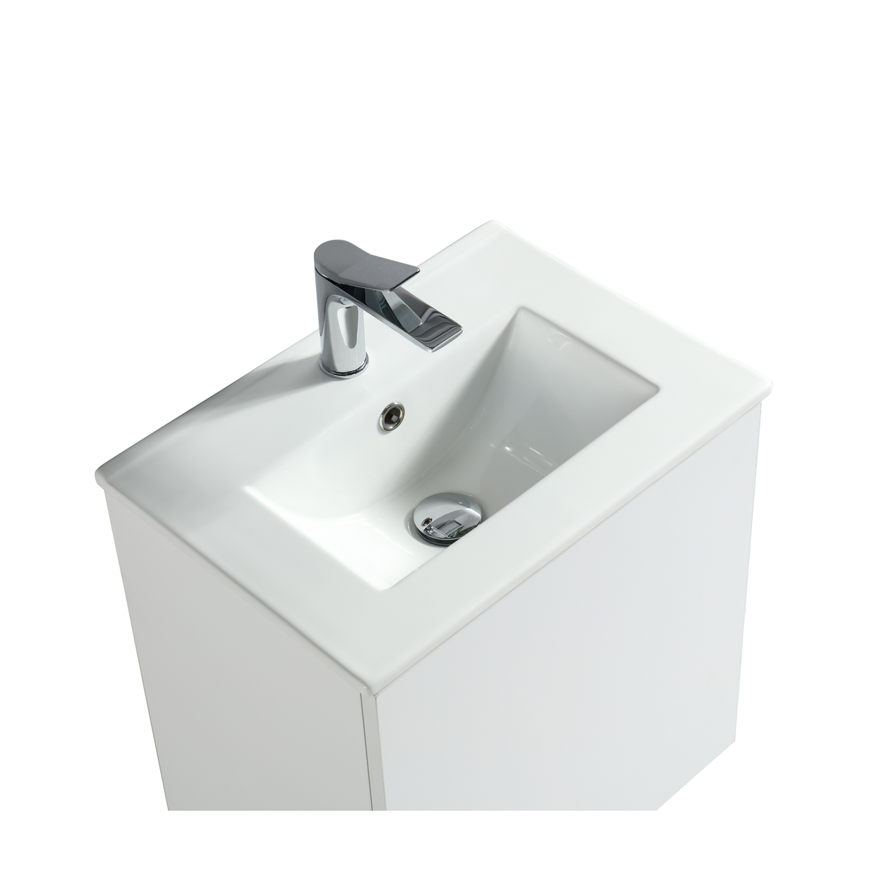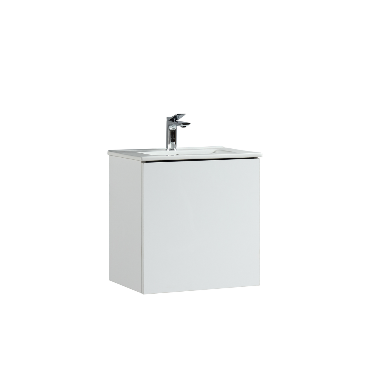 Baderomsmøbelet kommer ferdig montert, med en hvit keramisk servant. Døren har en soft close-funksjon som sørger for myk lukking og forlenget levetid. Baderomsmøbelet kommer uten håndtak, slik at du kan sette ditt personlige preg på møbelet ved å velge håndtak selv.