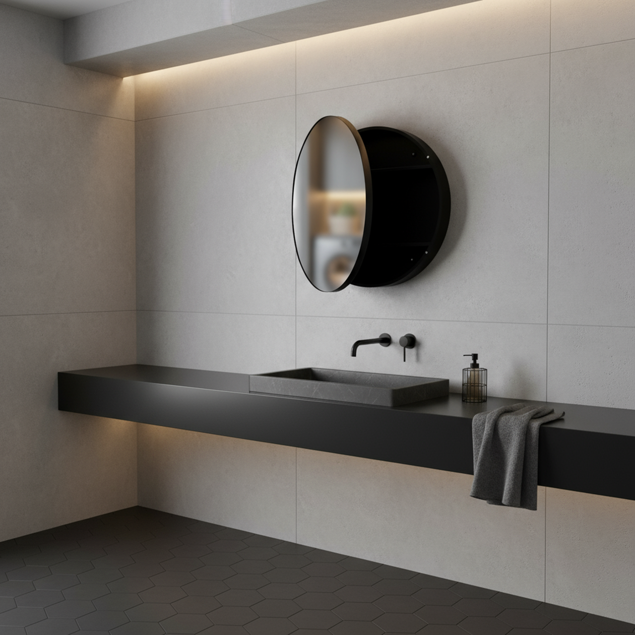 LIND STEEL SPEILSKAP RUND 60 SORT