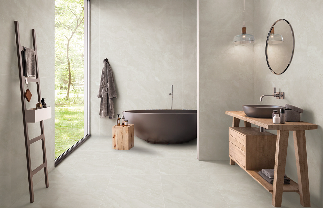 Nuvola er en porcellanatoflis med en finslipt overflate, som bidrar til et naturtro og eksklusivt uttrykk i ethvert hjem. Denne flisen i størrelse 60 x 120 har et rolig fargespill av duse beigetoner.
