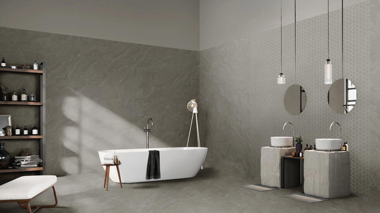 Nuvola er en porcellanatoflis med en finslipt overflate, som bidrar til et naturtro og eksklusivt uttrykk i ethvert hjem. Denne flisen i størrelse 60 x 60 har et rolig fargespill av duse gråtoner.