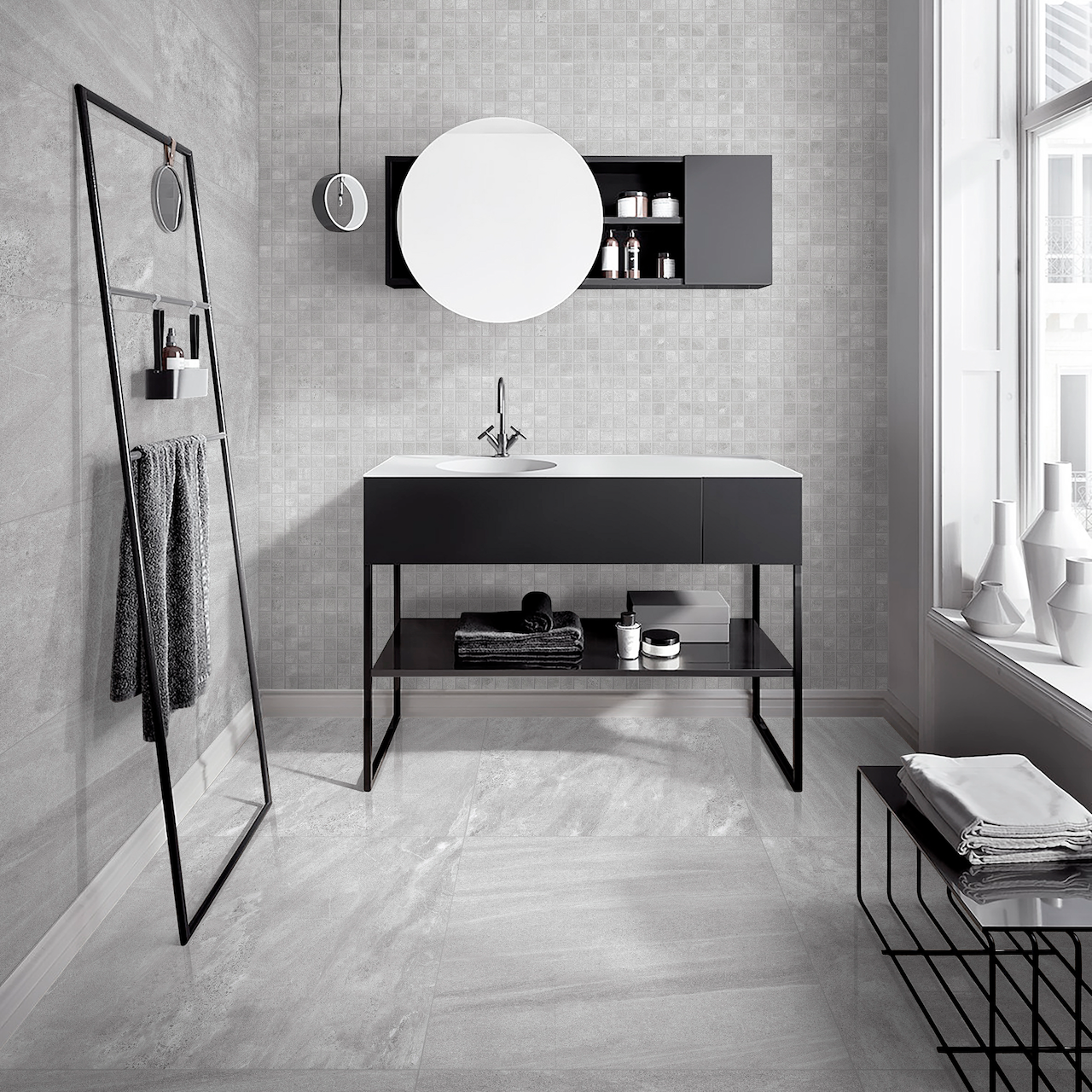 Flisen har en eksklusiv overflate både i utseende og slitestyrke, og vil skape en spennende og trendy helhet med sin naturtro steinstrukturerte overflate. Det klassiske eksklusive inntrykket vil fremheves ved å kombinere flisen med minimalistiske elementer med slette flater og rette kanter. I kombinasjon med mer tradisjonelle elementer og strukturerte materialer vil man få en mer rustikk helhet, og understreke den rolige spa-følelsen.