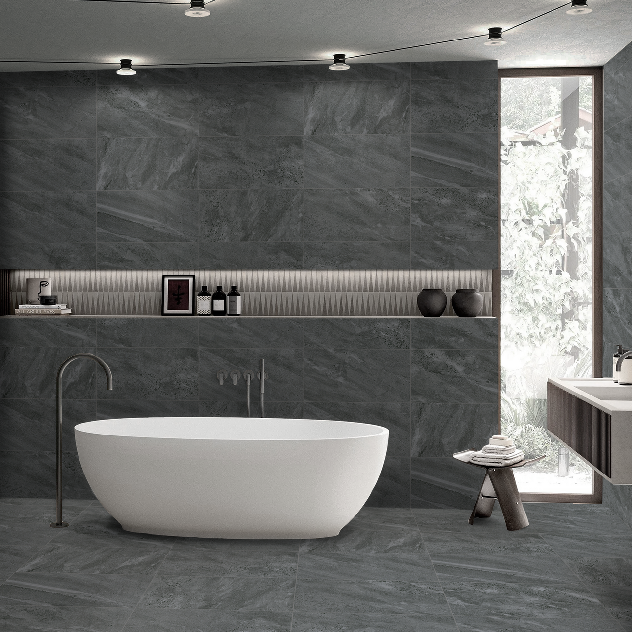 - Overflate: matt, steinstruktur