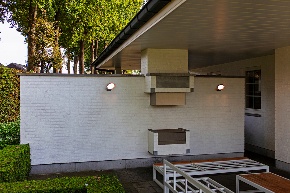 Denne vegglampen fra Lutec, kan med sitt varme lys og moderne design heve stemningen på dine uteområder uten å virke forstyrrende.