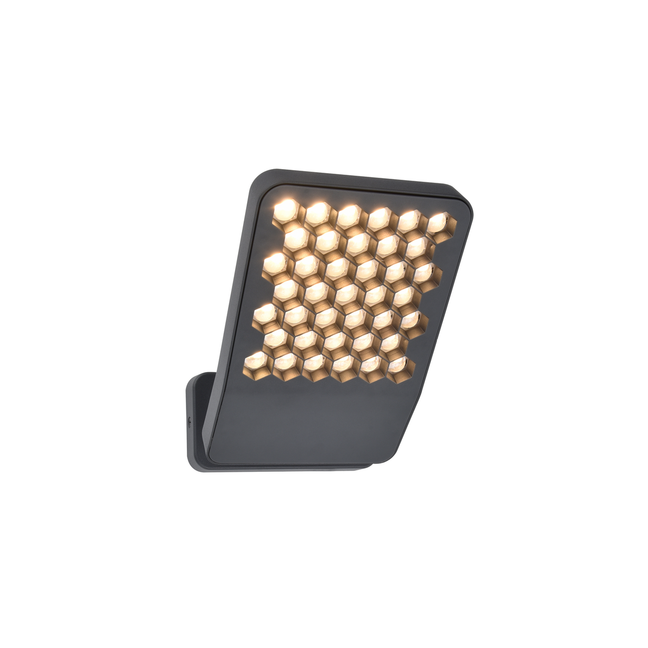 Med denne vegglampen fra Lutec får du en robust og stilren LED-sikkerhetslampe for utendørs bruk, utstyrt med bikubeformede klare diffusorer på 4000K.