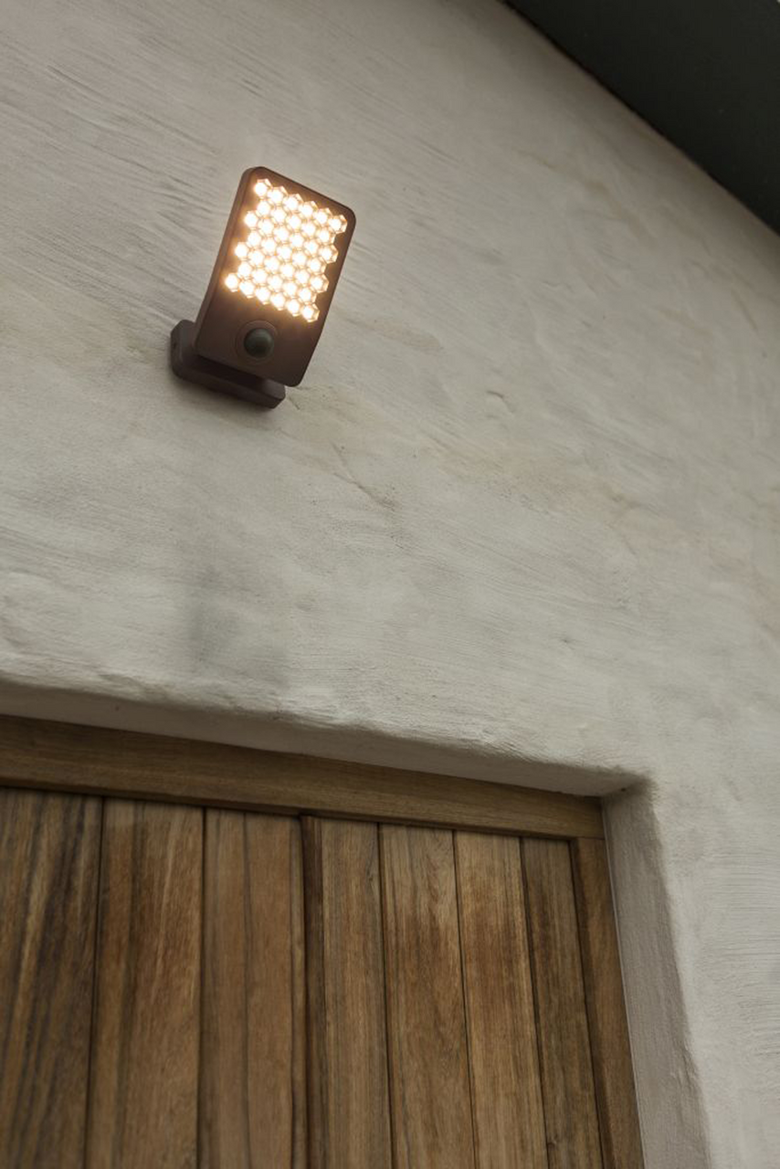 De klare diffusorene i bikakeform sørger for et behagelig lys, mens hodet kan roteres 90° for målrettet belysning. Med en justerbar PIR-sensor som oppdager bevegelse, får du ekstra trygghet rundt huset.