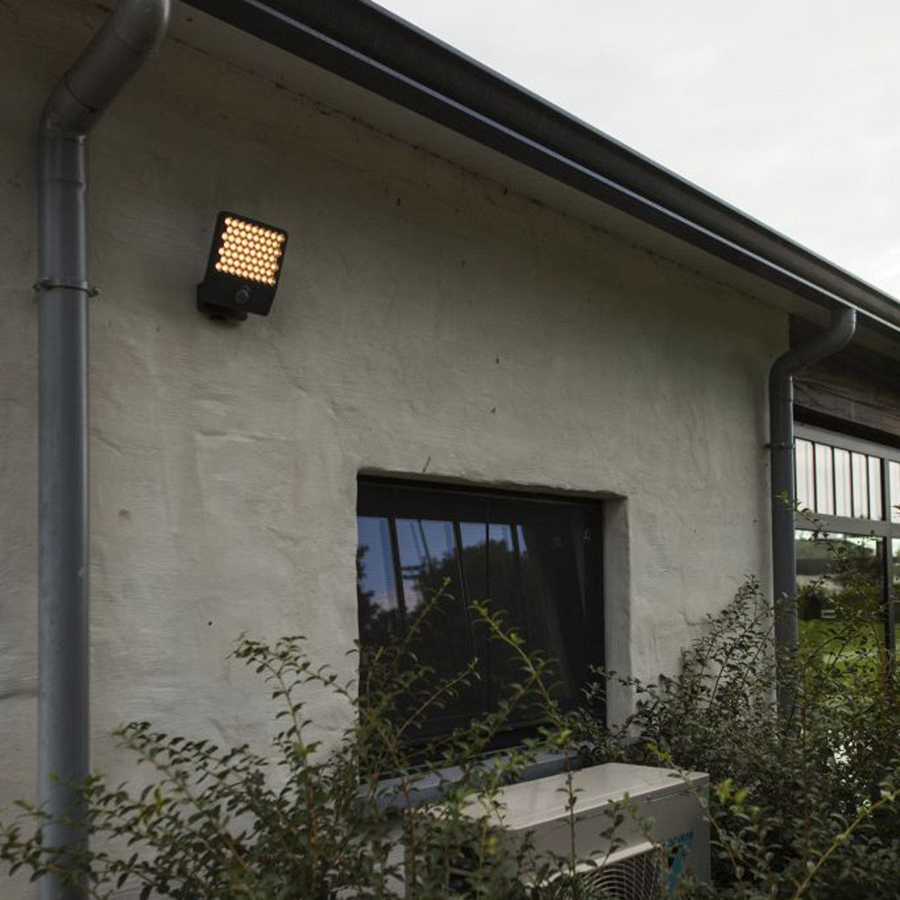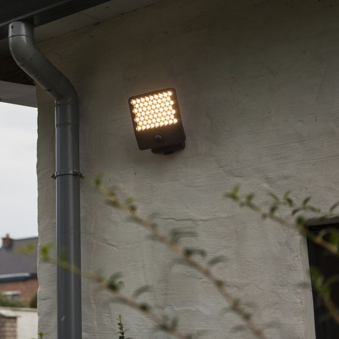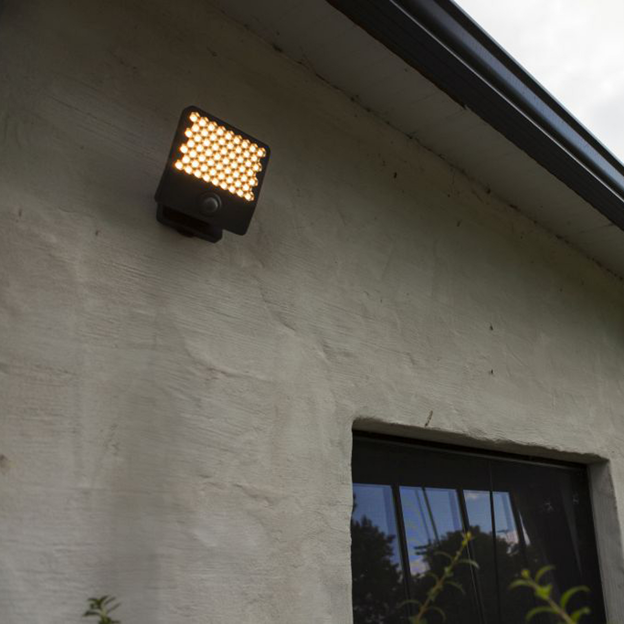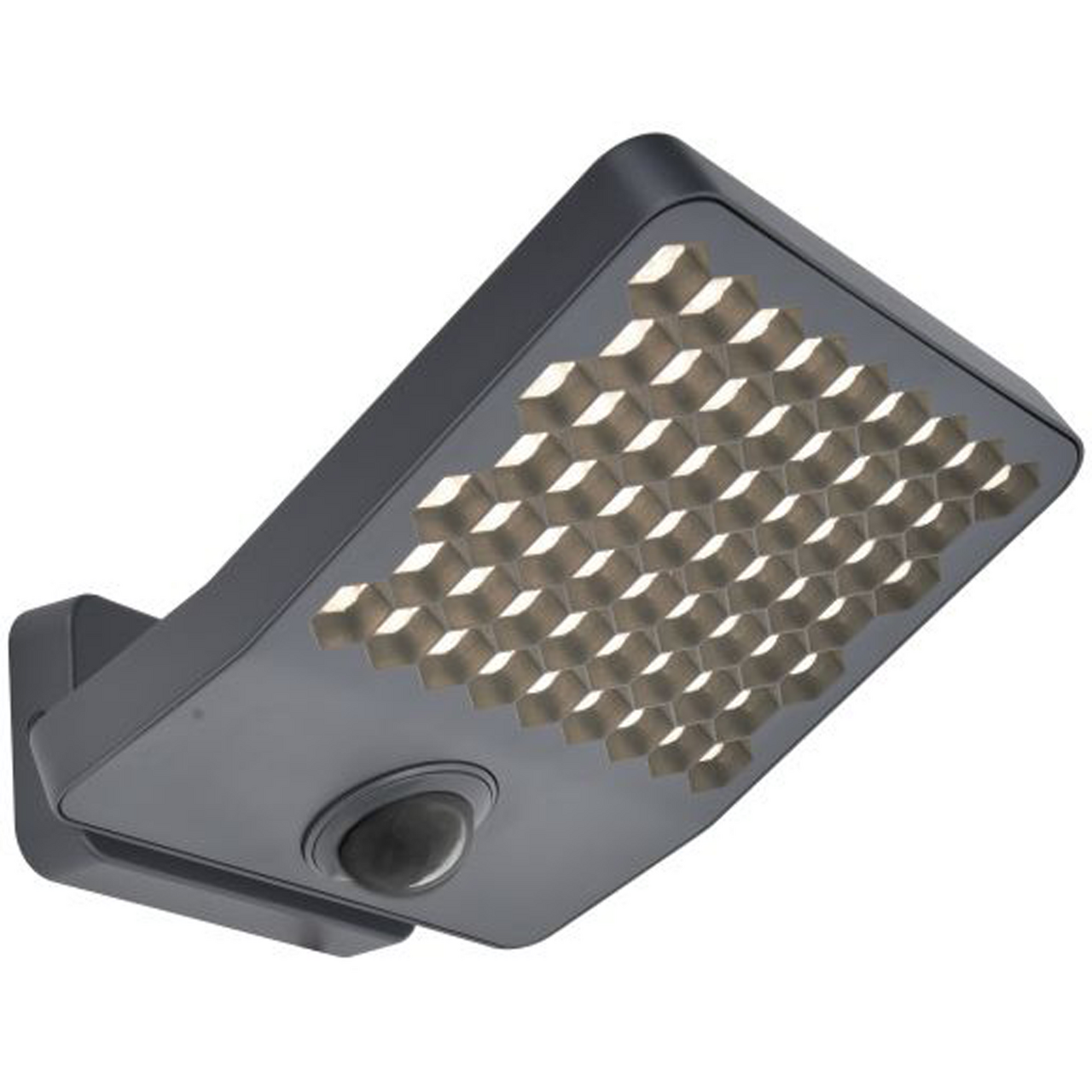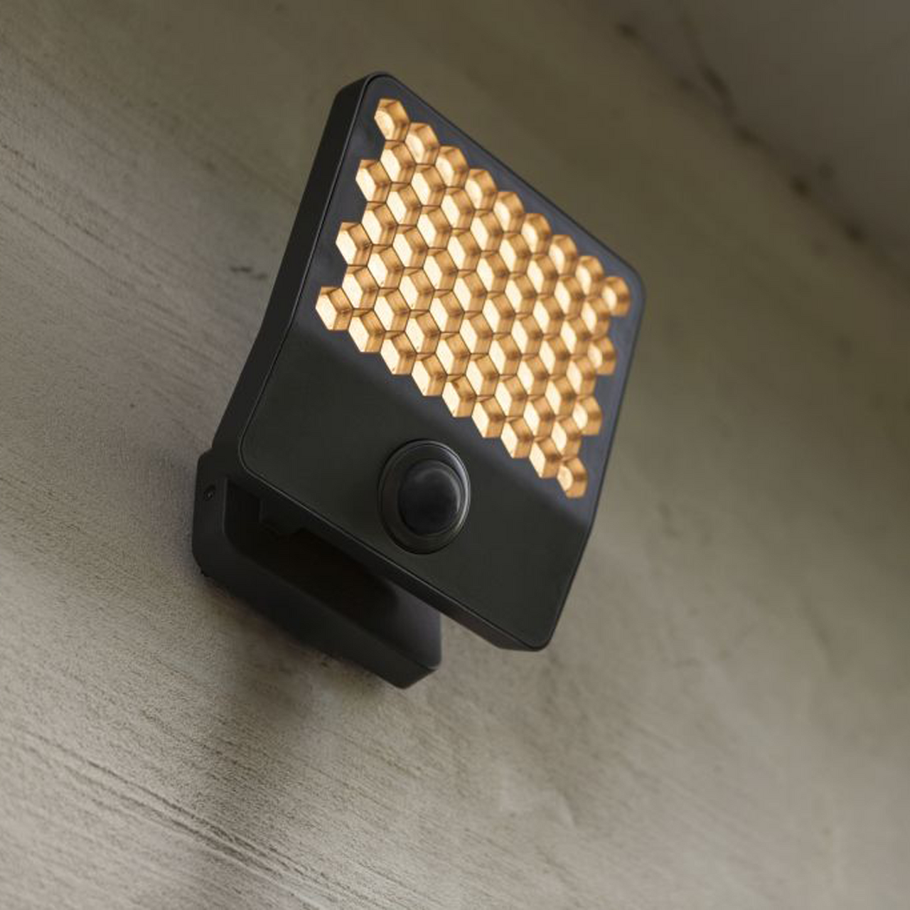 De klare diffusorene i bikakeform sørger for et behagelig lys, mens hodet kan roteres 90° for målrettet belysning. Med en justerbar PIR-sensor som oppdager bevegelse, får du ekstra trygghet rundt huset.
