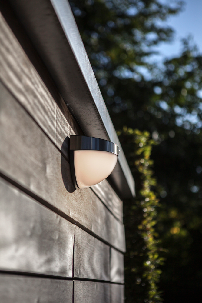 Halvklode solarlys som utstråler et homogent lys. PIR-bevegelsessensoren er pent integrert i den rustfrie stålringen og fanger opp alle bevegelser og sikrer et kraftig lys hver gang noen passerer gjennom natten.