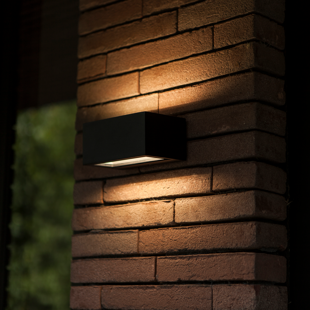 LUTEC GEMINI KVADRATISK LILLE UDENDØRS LED VEGGLAMPE OPP/NED 1 LYS SORT 3000K
