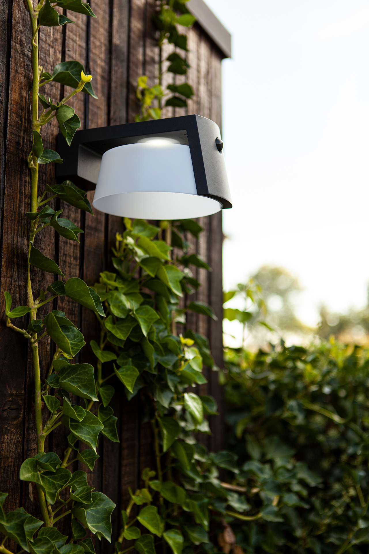 Elegant LED Outdoor Solar vegglampe med downlight funksjon. Frontdørområdet eller hageveggen vil lyse opp fullstendig takket være den kraftige lysstrålen.