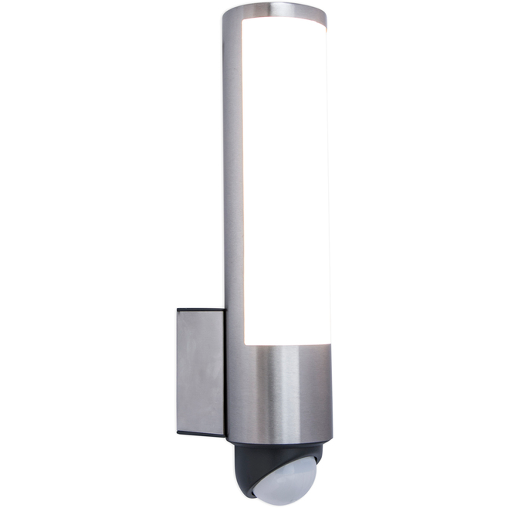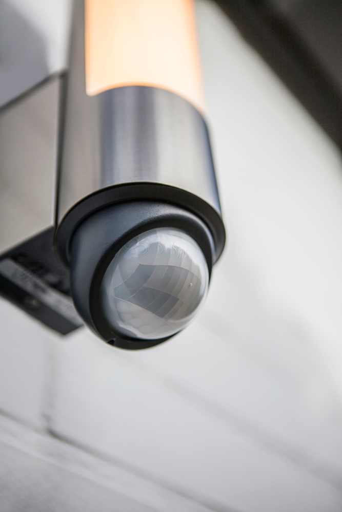 Rørformet vegglampe i rustfritt stål i InMotion-serien inneholder en horisontal og vertikal justerbar bevegelsessensor.
