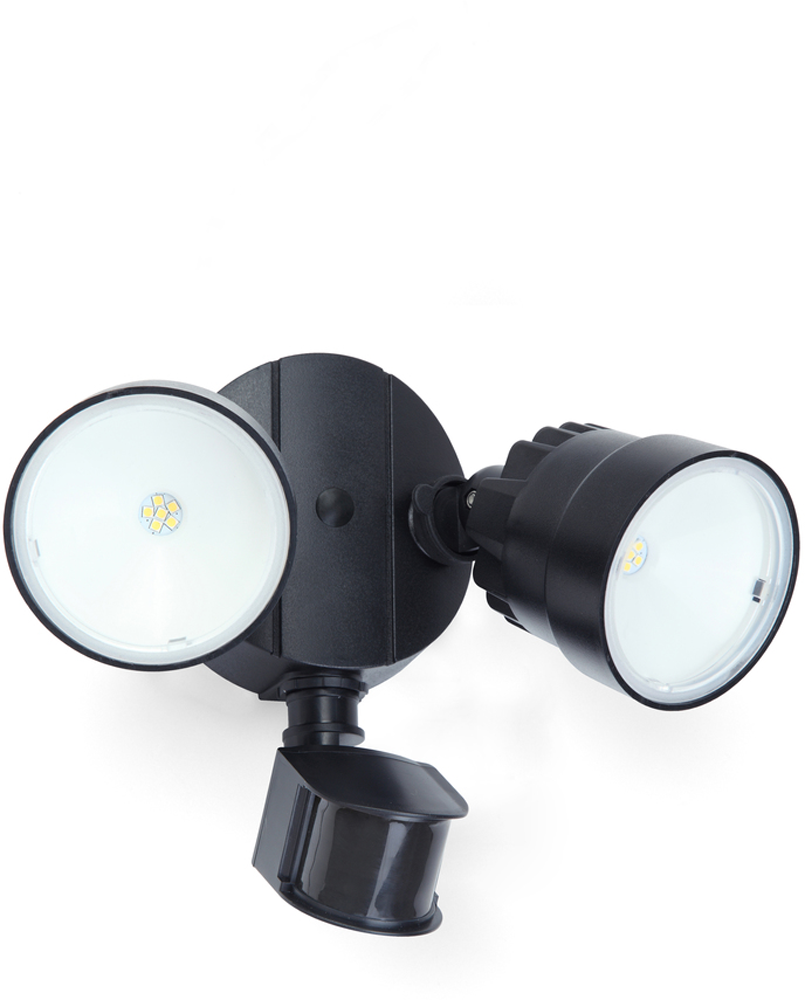 Elegant, men kraftig sikkerhetslyskaster med typisk "sykkellampe"-design. Denne nye oppgraderte versjonen med justerbar bevegelsessensor har økt lyseffekt på opptil 1700 lumen.