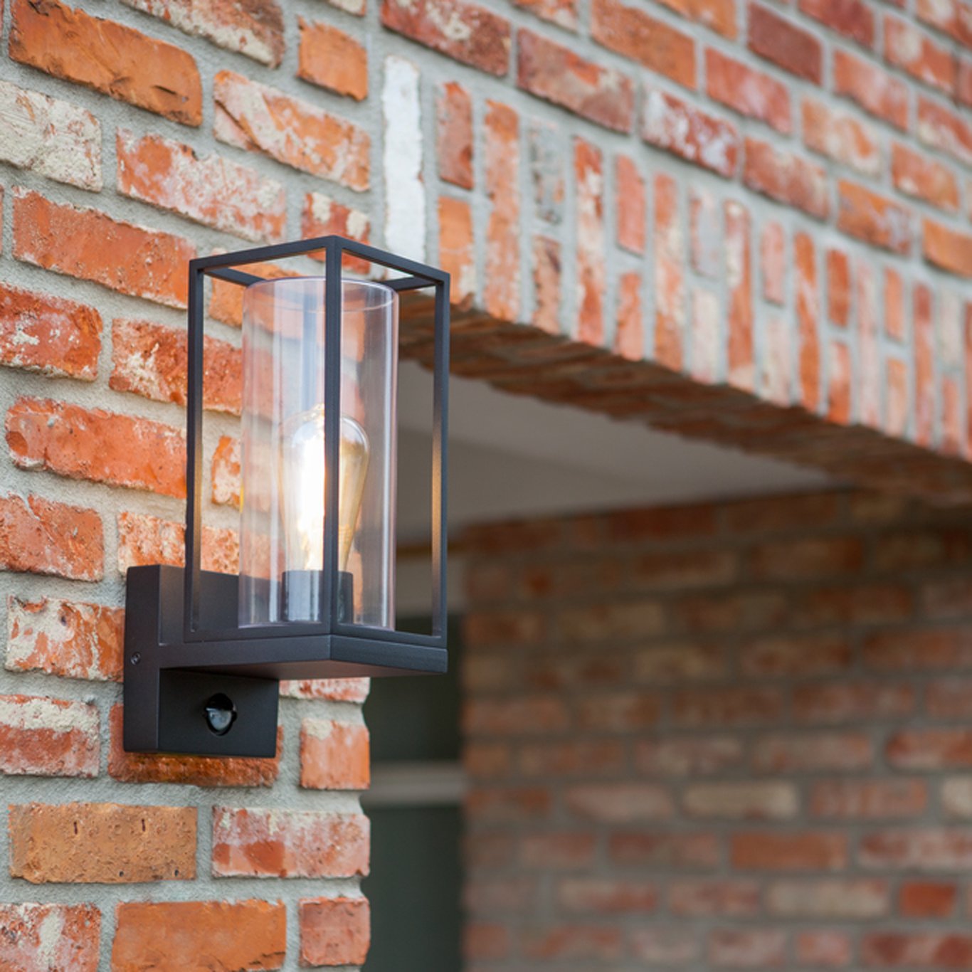 Denne utendørs vegglampen fra Lutec har et moderne design, og kommer med en praktisk bevegelsessensor.