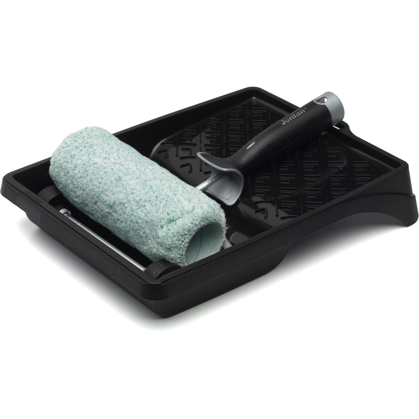 Dette praktiske rullesettet fra Jordan gir et suverent resultat, og sikrer en jevn og skjoldfri påføring på vegg og tak. Settet består av en rulle, en rullebøyle, og et malerullekar.