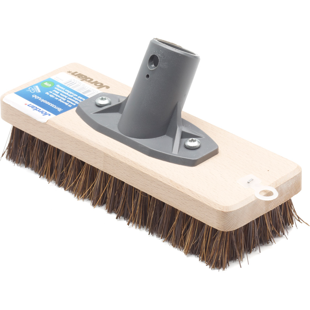 Terrasseskrubben brukes til fjerning av treolje og skitt. Størrelsen er tilpasset vaskebøtte. Kostehodet er i tre og passer til Jordans Treskaft Universal.