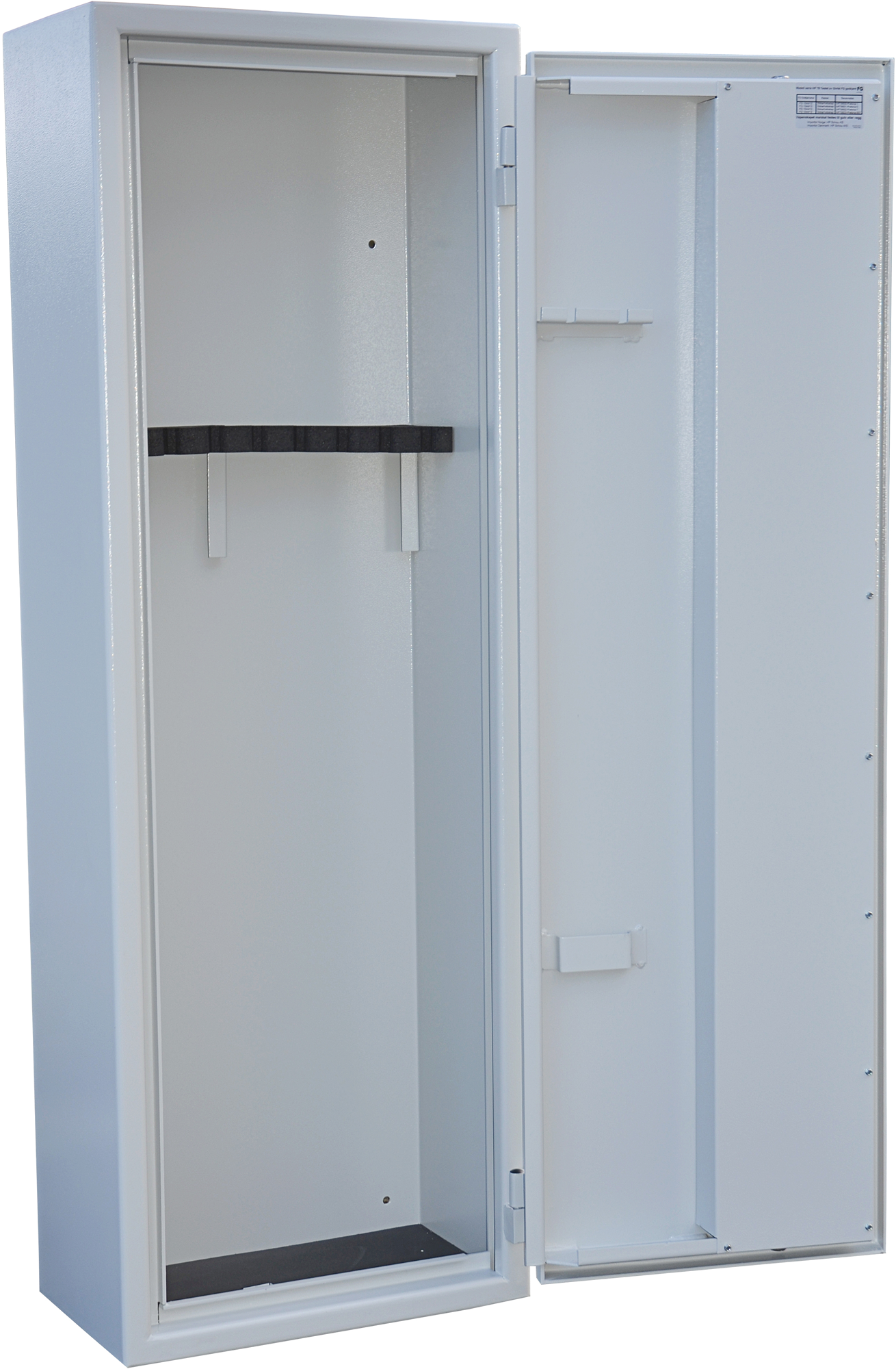 Høyt våpenskap fra Max Ranger. Tysk låsesystem med pal: to i siden, én i toppen og én i bunnen.