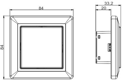 - Mål (H x B x D): 84 x 84 x 33,2 mm (med ramme)