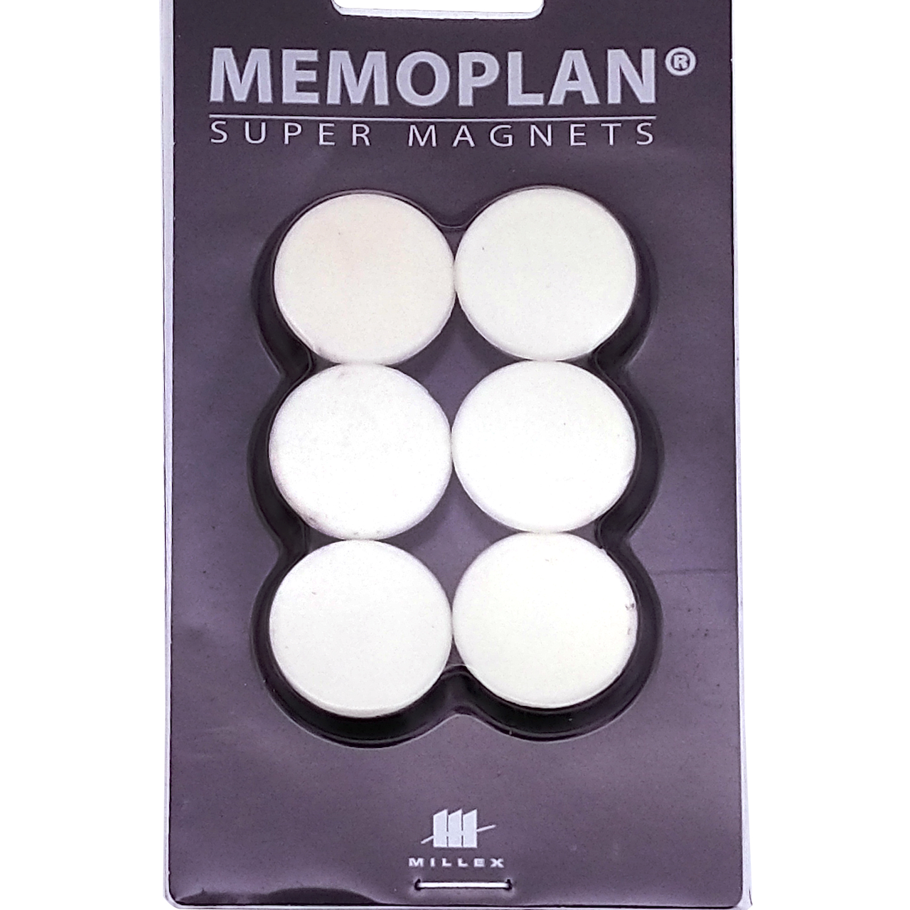 6 stk Millex Memoplan magneter i hvit til bruk på Millex Memoplan whiteboard.