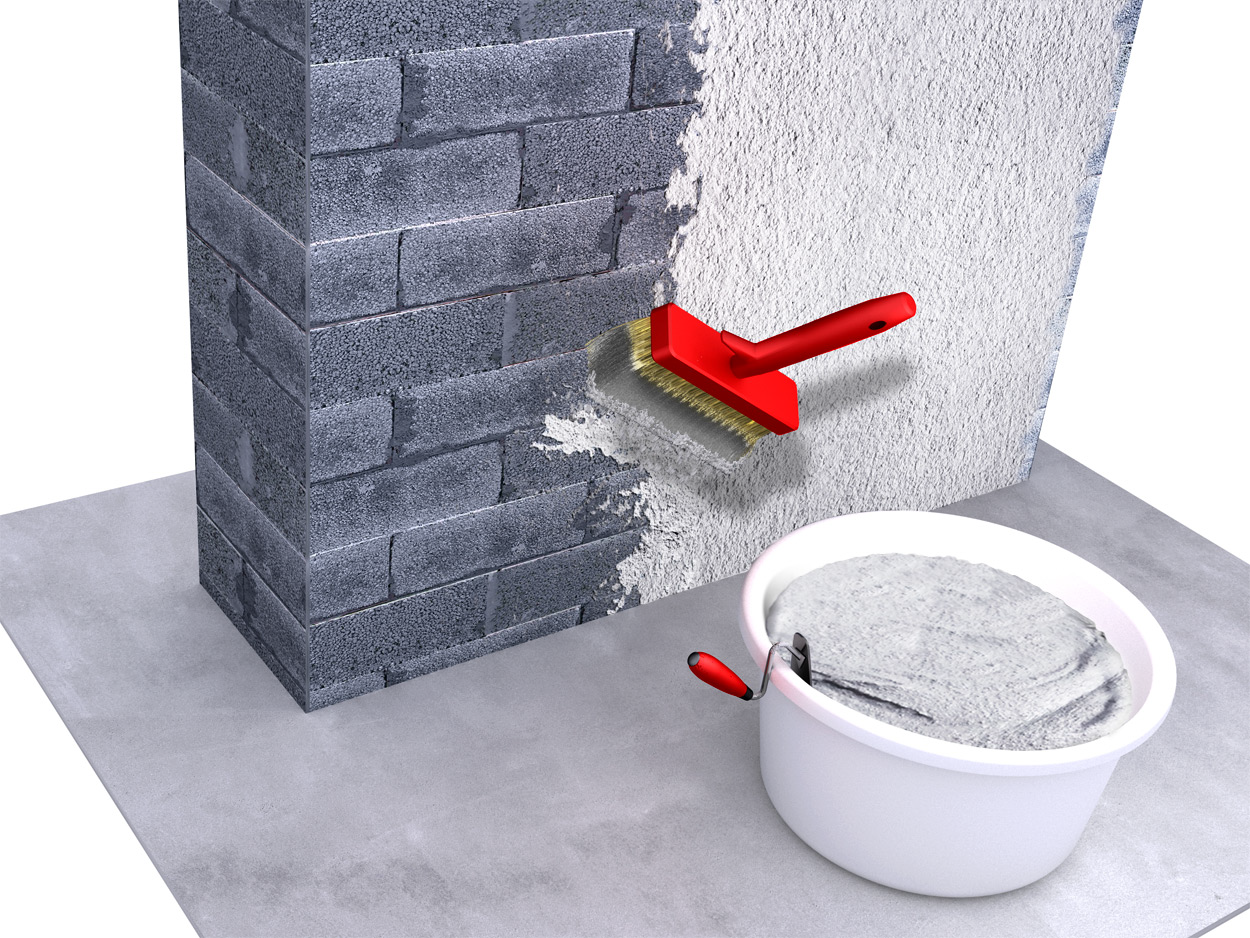 Sementbasert, vannavvisende og diffusjonsåpen slemming til overflatebehandling av faste homogene underlag som puss, betong, leca og murstein.