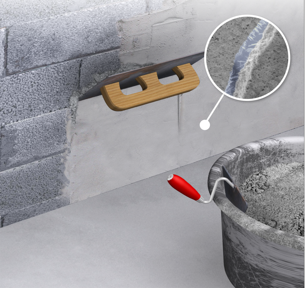 6870 Fibreplaster kan brukes i lagtykkelser fra 3-15mm på underlag av betong, eksisterende puss, teglstein, lecablokker mm.