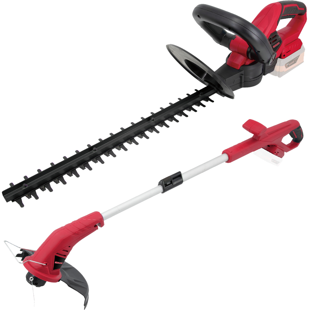 Både hekksaksen og gresstrimmeren drives av et 18V batteri. Hagesettet leveres uten batteri og lader, dette kjøpes separat.