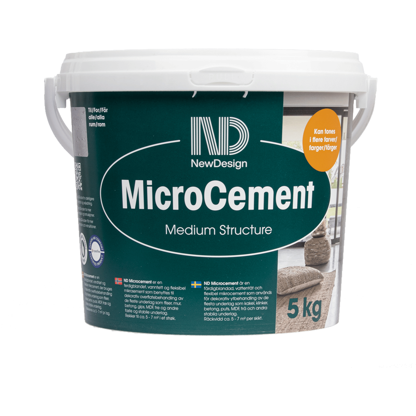 Denne mikrosementen fra New Design har en medium struktur og er en ferdigblandet hvit mikrosement som er ekstremt sterk, men samtidig er en fleksibel overflatebehandling for å skape vakre overflater med et flott individuelt og unikt designuttrykk.