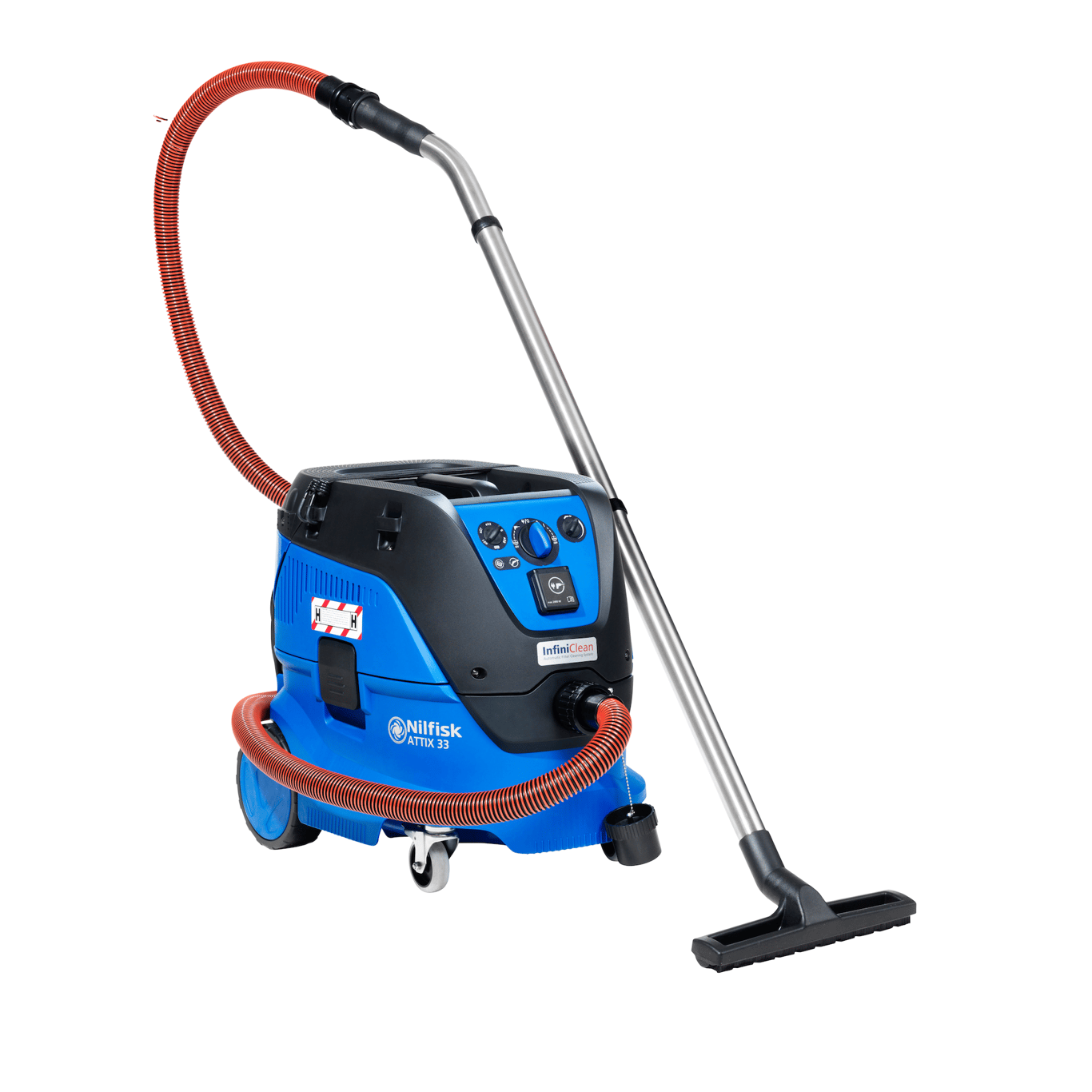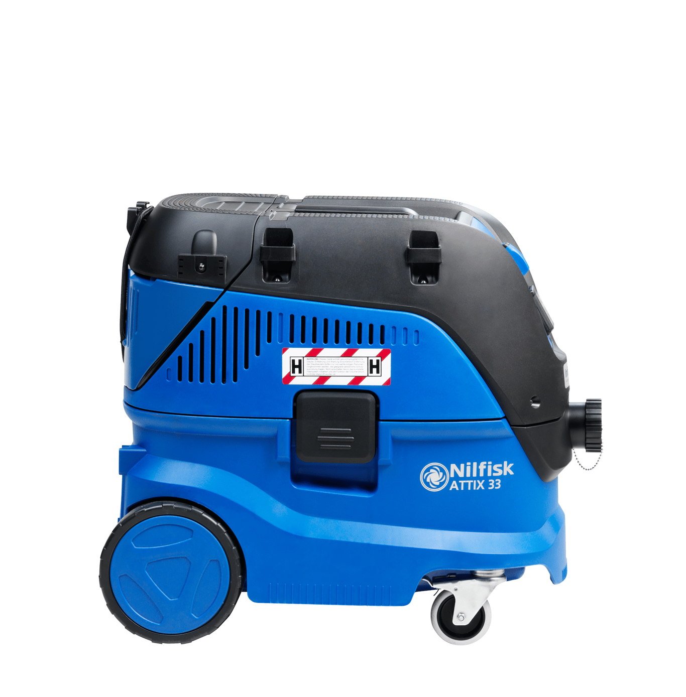 Attix 33-2H IC fra Nilfisk er en kraftig og sikker tørr- og våtsuger, utviklet for profesjonelt bruk. Den er svært effektiv, og enkel å håndtere og transportere. I tillegg er den egnet for bruk ved helsefarlig støv, da den 100 % forseglede luftstrømmen gjør at eventuelt farlig støv forblir inni maskinen.