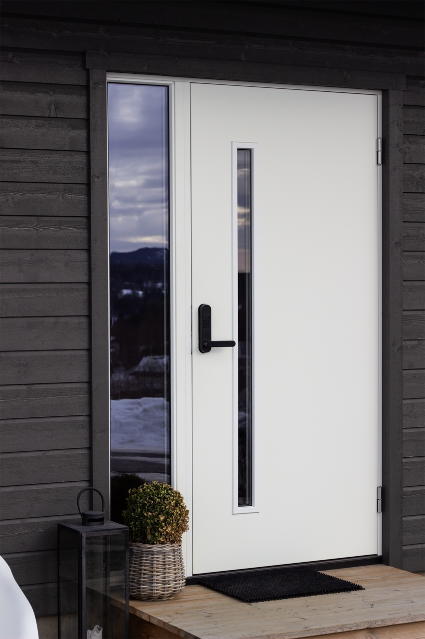 Den er enkel å montere på standard ytterdør, leveres med mekanisk nødnøkkel. Låsen har plass til mange brukere, auto-lås og passasjemodus, samt sikkerhetsfunksjoner som kamuflasjekode, anti-sabotasje og enkel utgang innenfra. Den drives av batterier med varsling før de tømmes. Med Connect Module kan låsen integreres i smarthjemsystemer som Homey, Futurehome o.l.