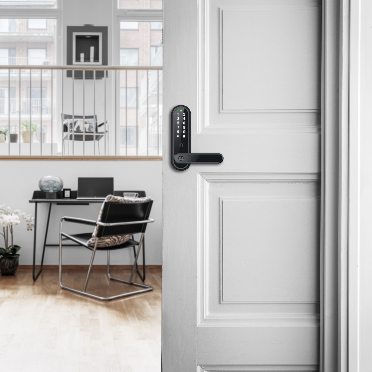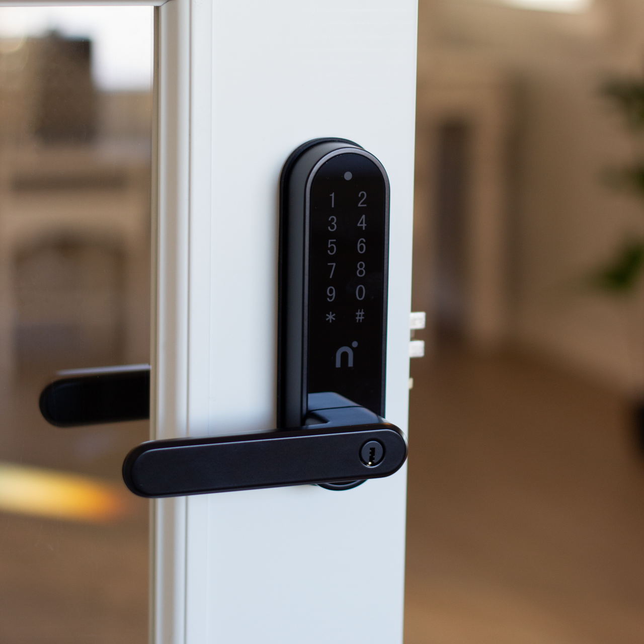 Låsen monteres enkelt på standard innerdør og leveres med mekanisk nødnøkkel. Den har plass til mange brukere, auto-lås, og sikkerhetsfunksjoner som kamuflasjekode, anti-sabotasje og enkel utgang innenfra. Drives av batterier med varsling før de tømmes. Med Connect Module kan låsen integreres i smarthjemsystemer som Homey, Futurehome o.l.