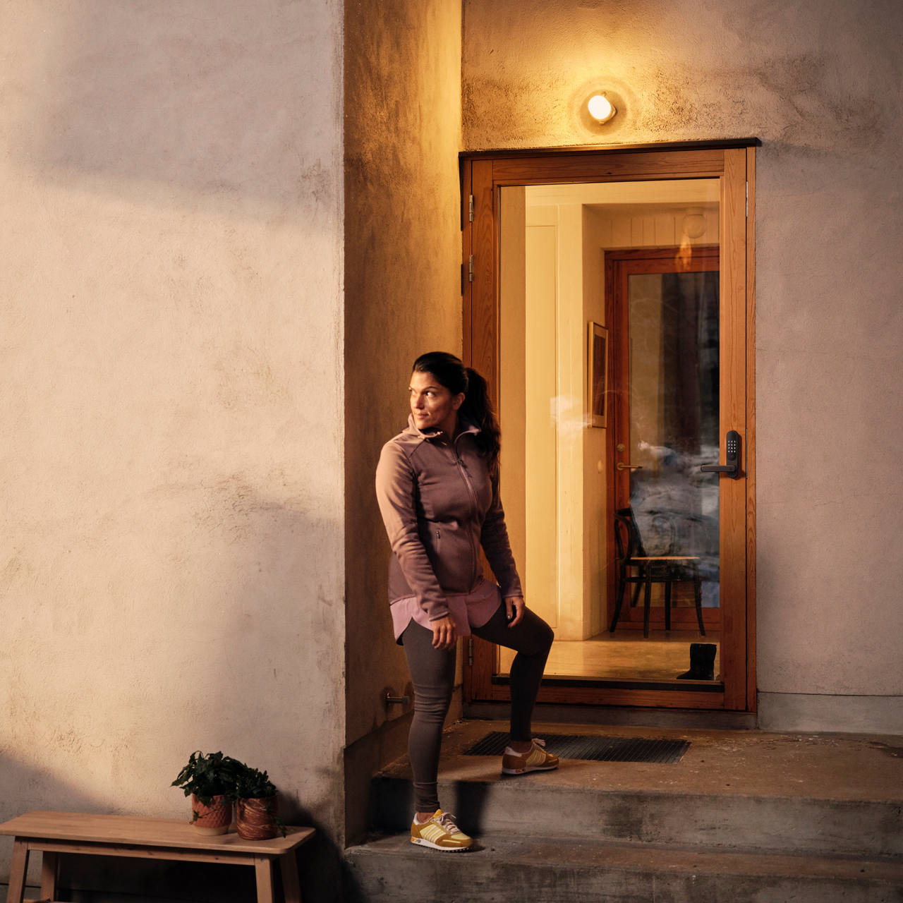 Låsen monteres enkelt på standard ytterdør og leveres med mekanisk nødnøkkel. Den støtter mange brukere, har auto-lås og passasjemodus, samt sikkerhetsfunksjoner som kamuflasjekode, anti-sabotasje og enkel utgang. Med Connect Module kan låsen integreres i smarthjemsystemer som Homey, Futurehome o.l.