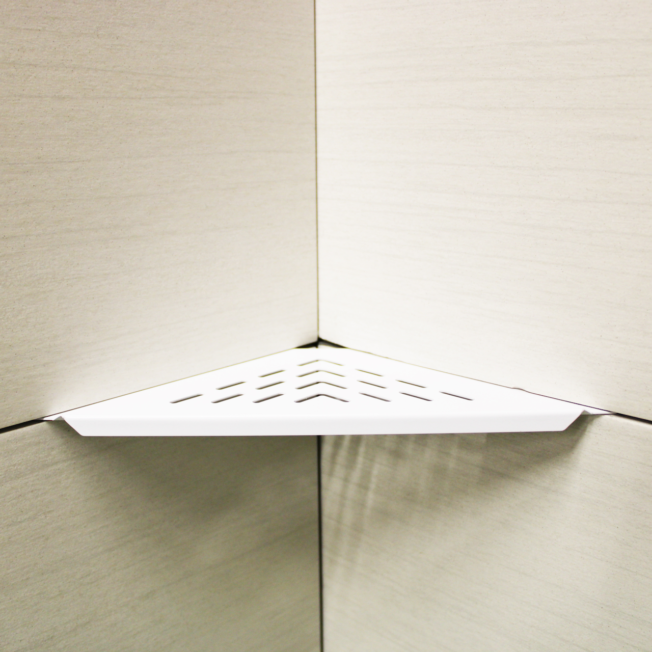 Hyllen er enkel å montere da du ikke trenger å bore og du trenger heller ikke noe monteringstilbehør. Den festes enkelt i fugen i et 90° hjørne, sammen med silikon.