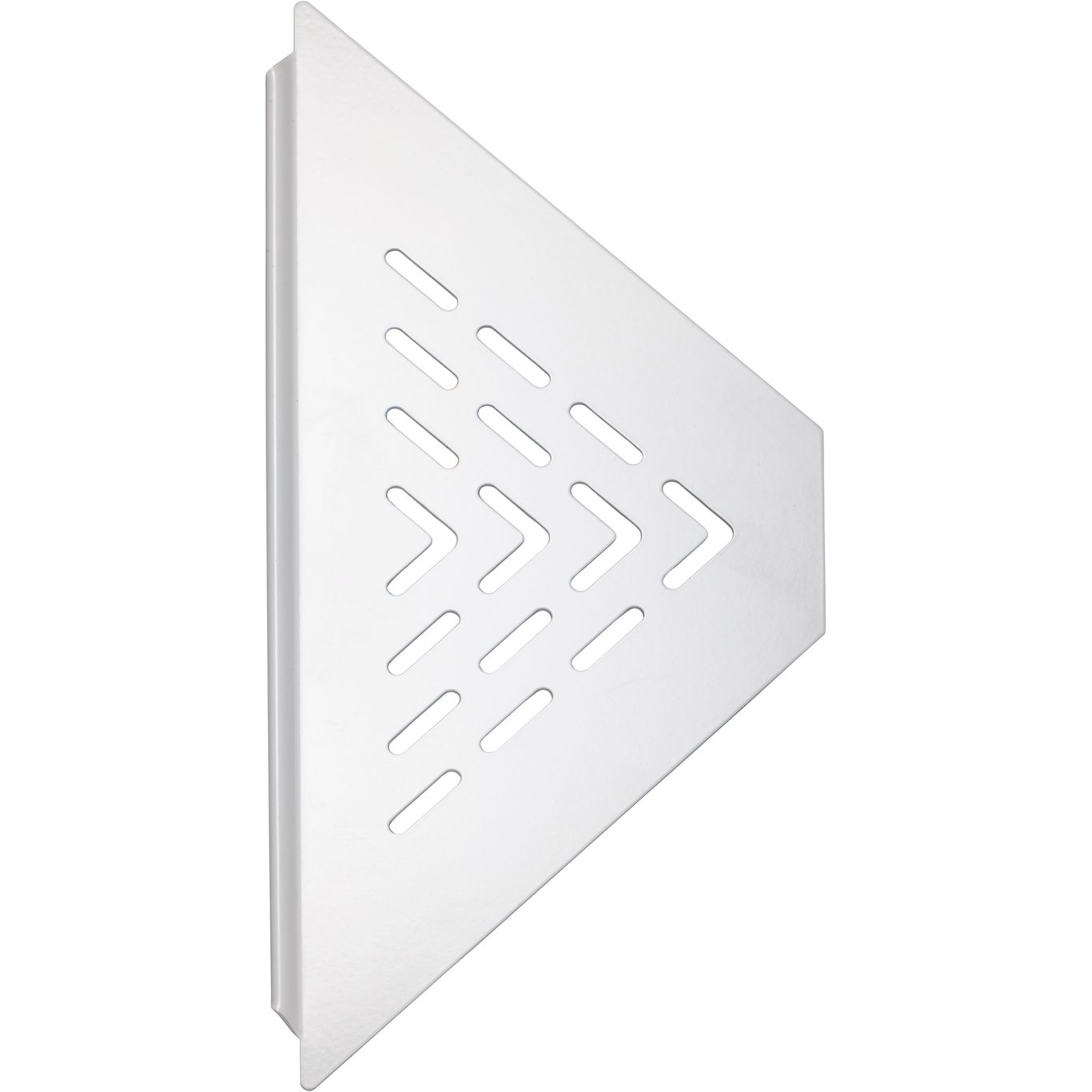 Denne praktiske hjørnehyllen kommer i hvitlakkert matt stål, og vil gi et stilrent uttrykk i dusjen.