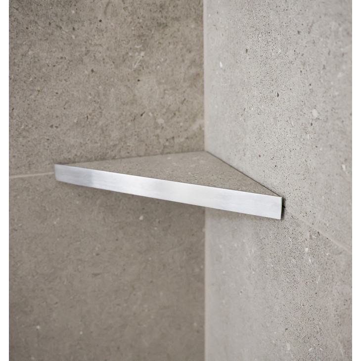 Hjørnehylle tile in børstet stål