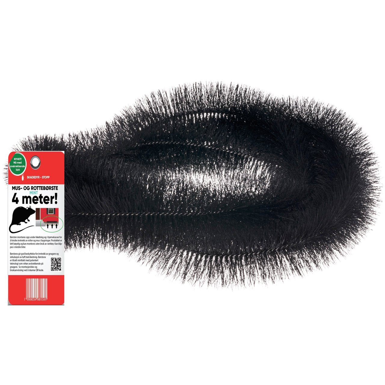 Denne mus- og rottebørsten har rustfri metallkjerne og slitesterke børster som tilpasser seg sprekker og åpninger og monteres raskt for å hindre mus og rotter i å komme inn i bygninger.