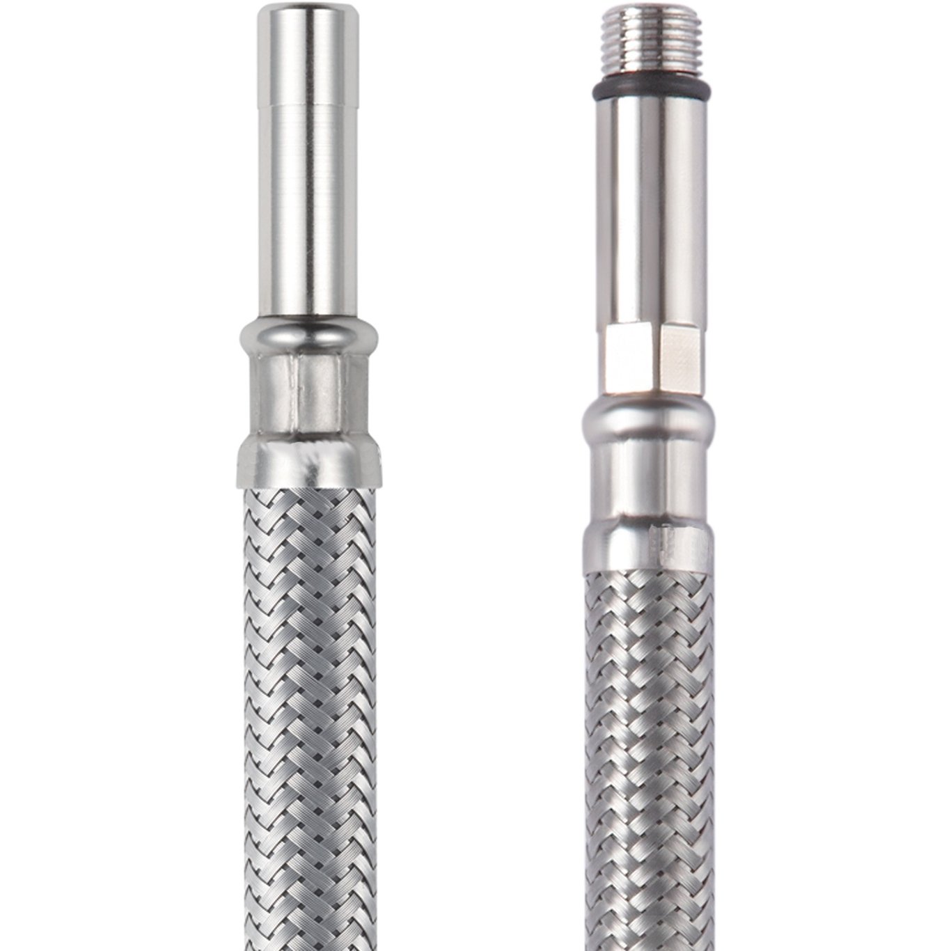 Fleksibel PEX innerslange og flettet utside i rustfritt stål, er den mest universelle trykkslangen med forbedrede hygiene egenskaper som inkluderer en avansert tverrbundet polyetylen foring. Slangen samsvarer med alle gjeldende standarder over hele verden for bruk til drikkevann installasjoner.