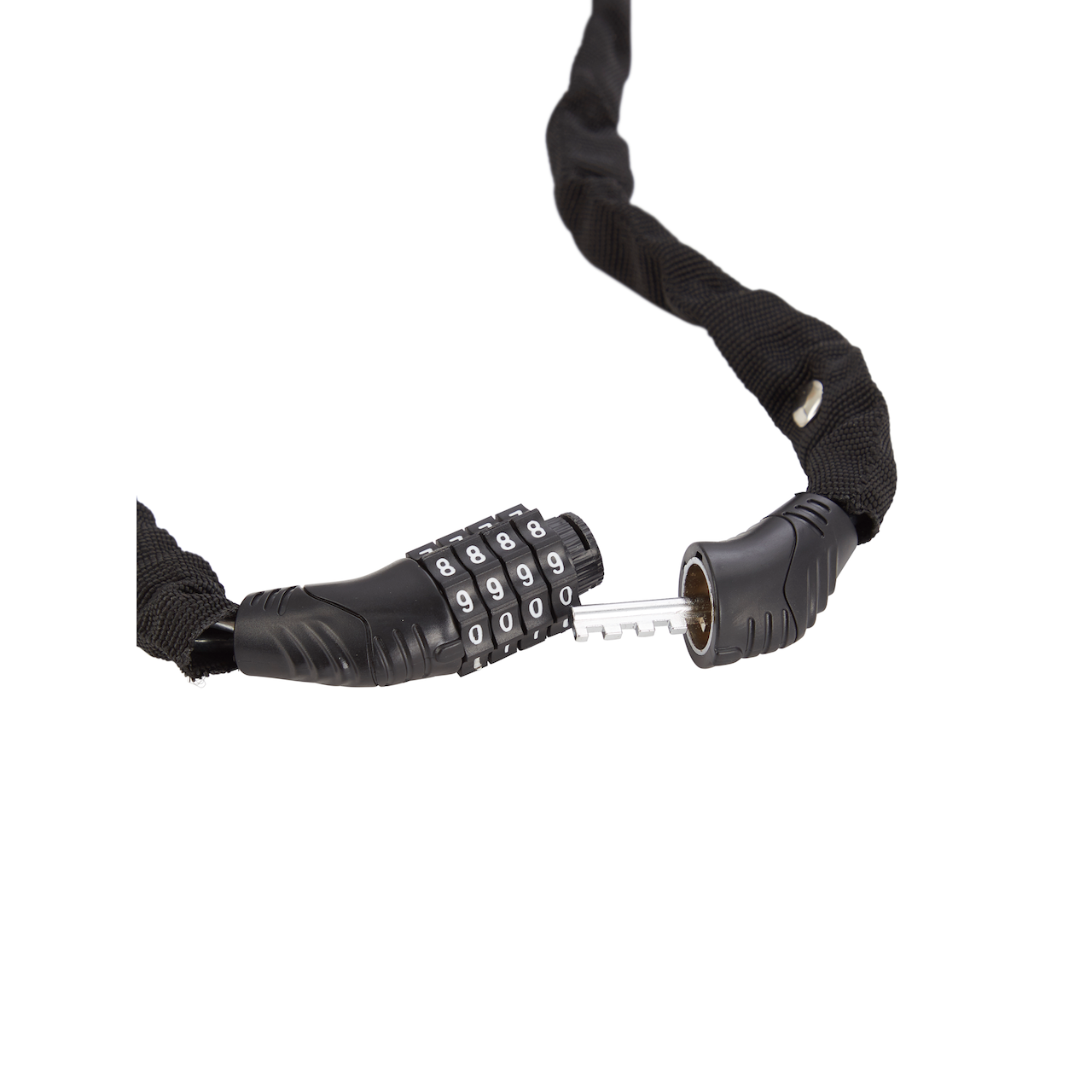 Sykkellås i kjetting, med kode.