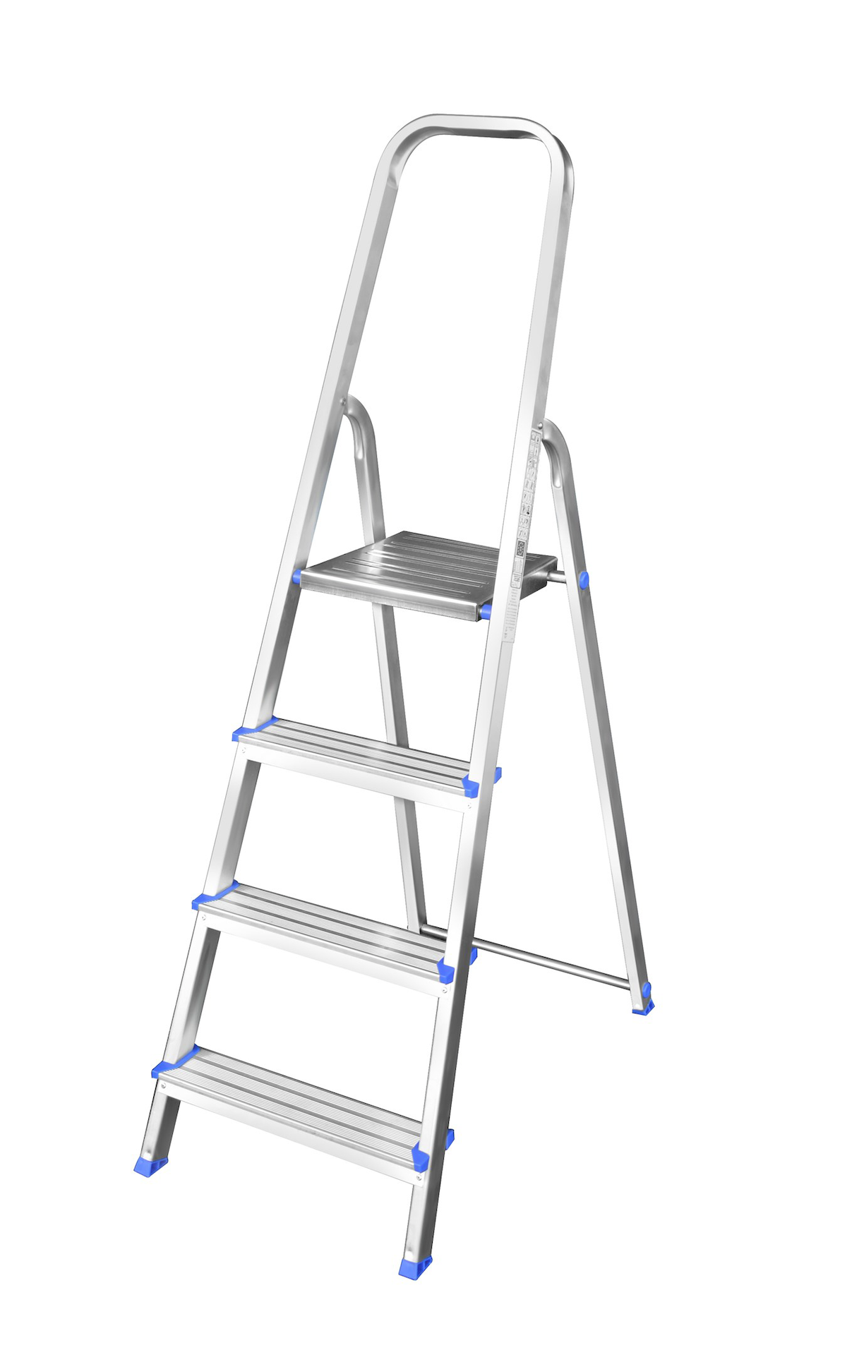 Gardintrapp 3-trinn Stødig gardintrapp i aluminium med 3-trinn. Denne gardintrappen er lett å håndtere, har sklisikre trinn og en god plattform å stå på. Den har en høy støttebue 61cm over øverste trinn og er utrustet med en praktisk avlastningshylle. Plattformen i metall låser stigen i utfelt posisjon og sklisikre trinn som gir god stabilitet. Gardintrappen passer bra for arbeid innendørs, der det er viktig å benytte en lett og smidig trapp.