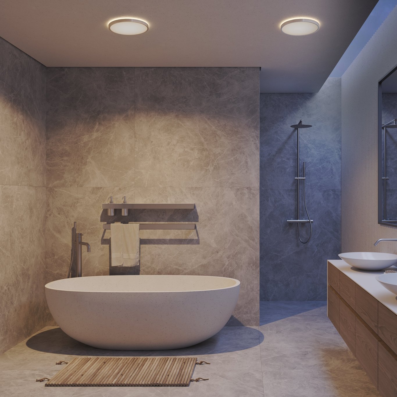 Denne ultratynne plafonden fra Nordlux har integrert LED som gir et godt og funksjonelt lys. Den høye IP-graden gjør at den egner seg godt i fuktigere rom, som for eksempel på badet, i boden eller i kjelleren.