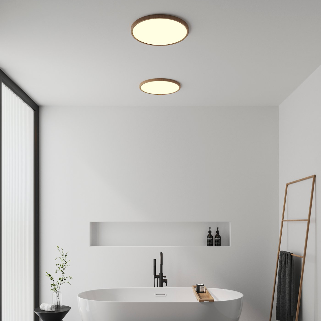 Denne ultratynne plafonden fra Nordlux har integrert LED som gir et behagelig varmhvitt lys.