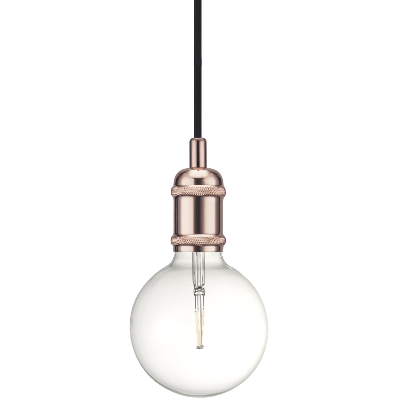 Lampeholder type: E27Max watt: 60WLyskilde: EksklusivIP grad: IP20Farge: KobberFarge på kabel: Sort tekstilledningPrimær materiale: MetallHøyde (cm): 10,2Kabel lengde (cm): 200Diameter (cm): 5,1Forskrift om elektrisk utstyr § 21 forplikter Megaflis som tilbyder av elektrisk installasjonsmateriell til å opplyse om at installasjonsmateriell ment for å kunne inngå i et fast elektrisk anlegg kan kun installeres av en registrert installasjonsvirksomhet. Unntatt er elektrisk materiell som utelukkende er ment for bruk i faste teleinstallasjoner, og elektrisk materiell som forbruker selv lovlig kan installere. Her kan du lese mer om hva du har lov til å gjøre selv av elektrisk arbeid: https://www.sikkerhverdag.no/strom/gjor-det-selv/elektrisk-arbeid-dette-kan-du-gjore-selv-av-elektrisk-arbeid/