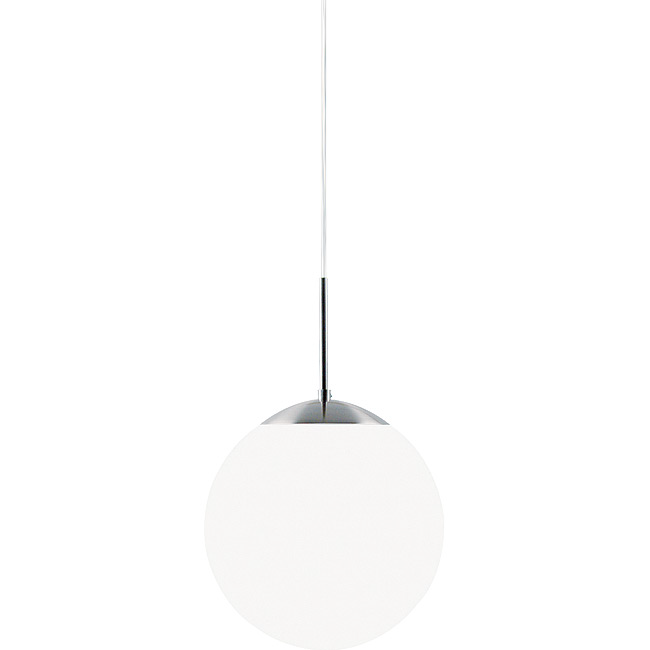 Spennende pendel fra danske Nordlux. Utførelse i børstet stål og hvit glass. Diameter på 20cm.