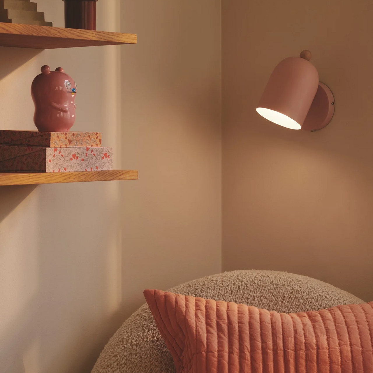 Gaston er en strømlinjeformet vegglampe med justerbar skjerm og fin tredetalj som passer godt på barnerom og soverom.