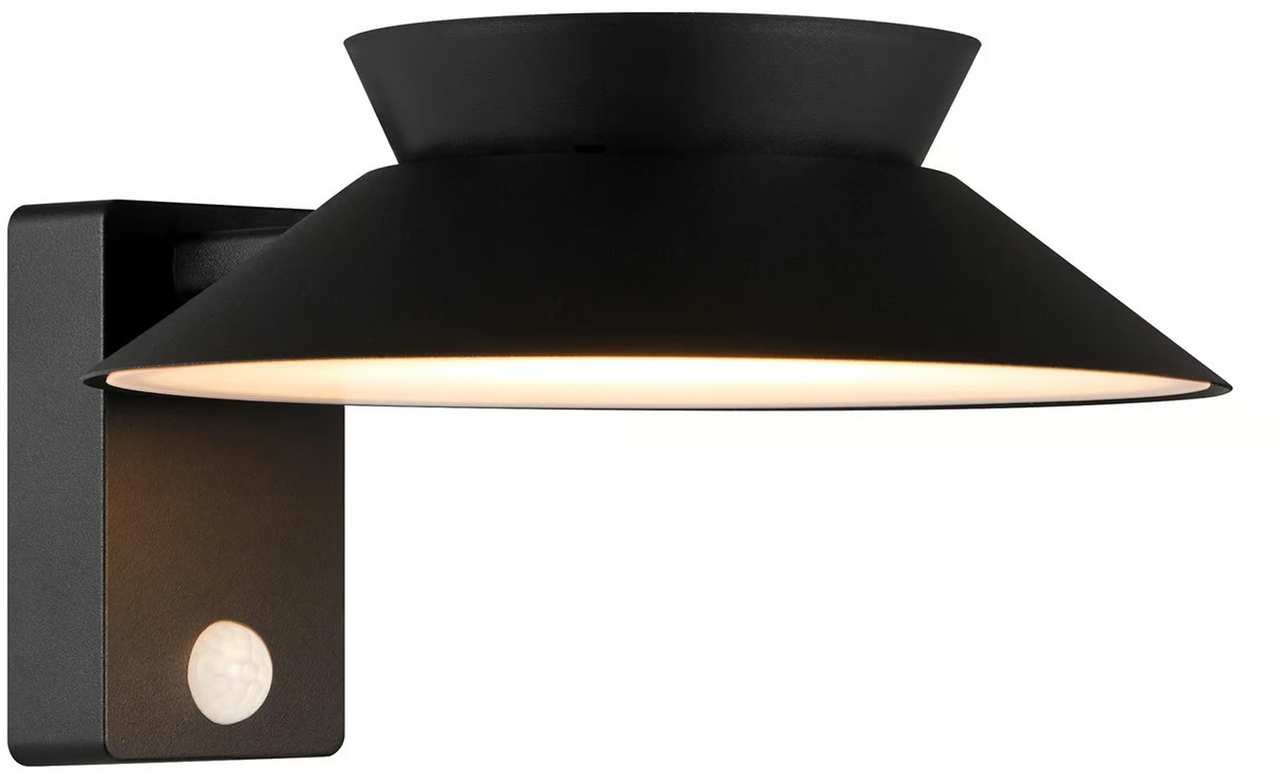 Lampen har et rundt, klassisk design med en stor lysflate som slår seg på automatisk når sensoren registrerer bevegelse. Den installeres enkelt uten behov for ledninger.
