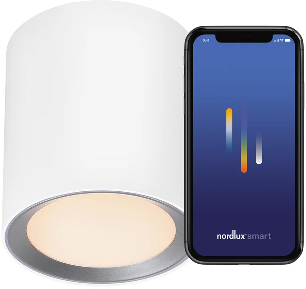 Denne lampen fra Nordlux har et stilrent hvitt design, og med Nordlux Smart-appen kan du enkelt slå av/på, dimme og justere lyset etter eget ønske.