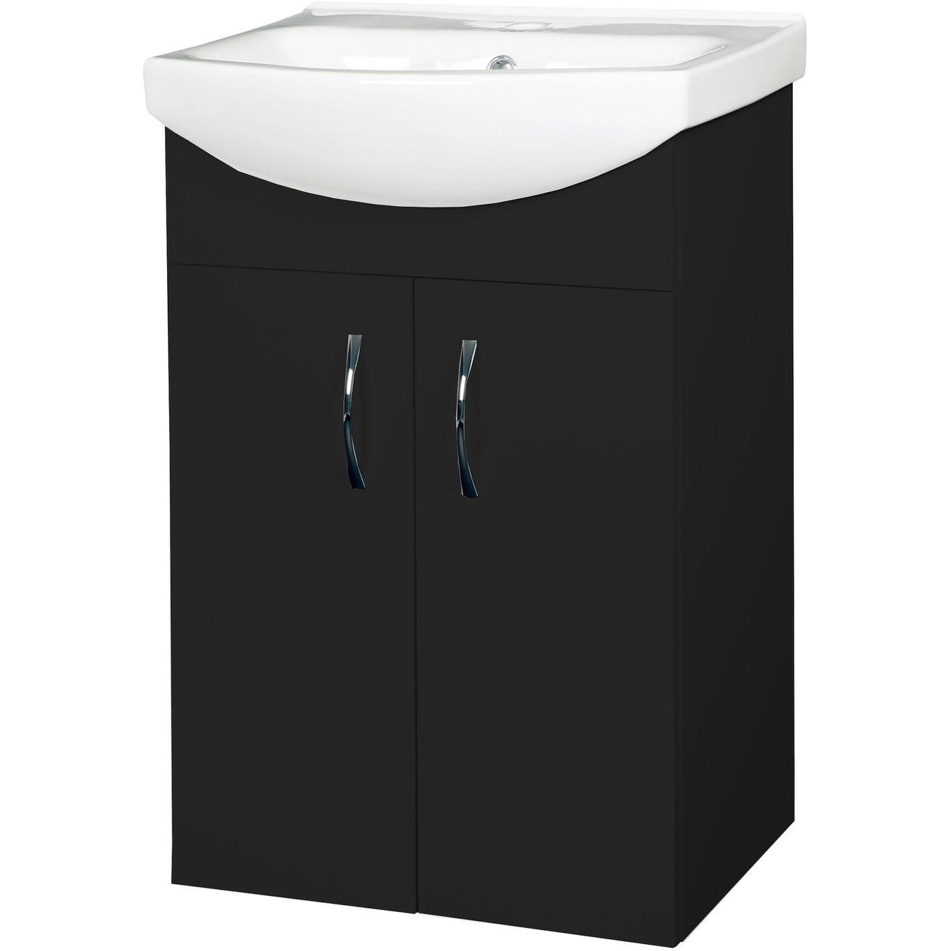 Nortiq Artic er et klassisk baderomsmøbel i 50cm bredde i matt sort utførelse. Møbelet leveres med en buet servant i porselen, et underskap med to dører og to håndtak i forkrommet aluminium. Dette møbelet er perfekt til mindre bad eller til gjestetoalettet.