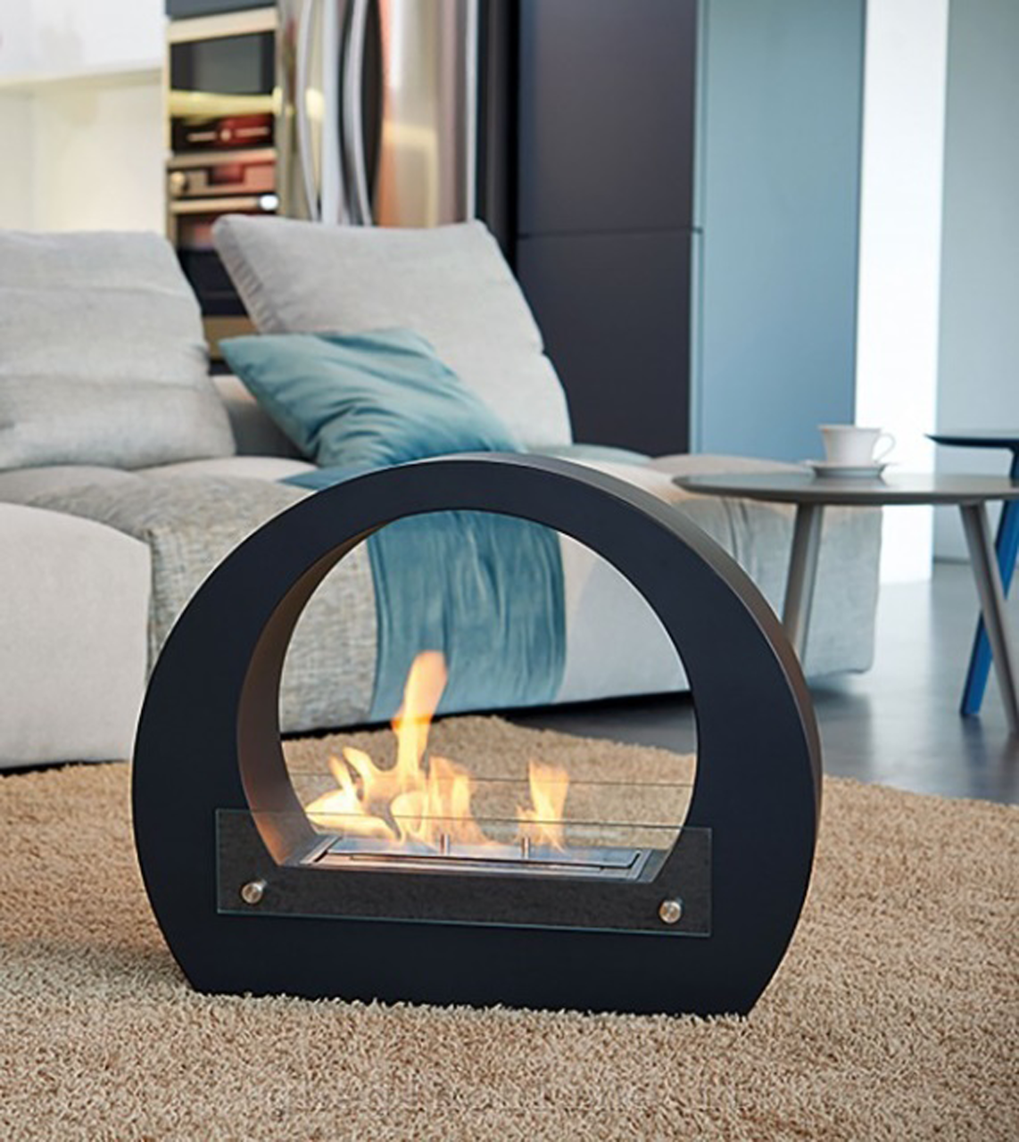 Peisen er liten og mobil, så den kan plasseres fritt i hjemmet etter ønske og flyttes etter behov. Den brenner med en luktfri flamme og leveres med et rundt keramisk fiber- og flammelukningslokk.