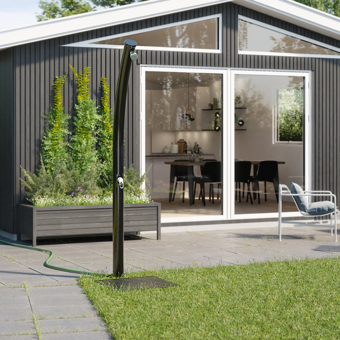Denne utedusjen fra Nortiq er soloppvarmet, og leveres med blandebatteri.