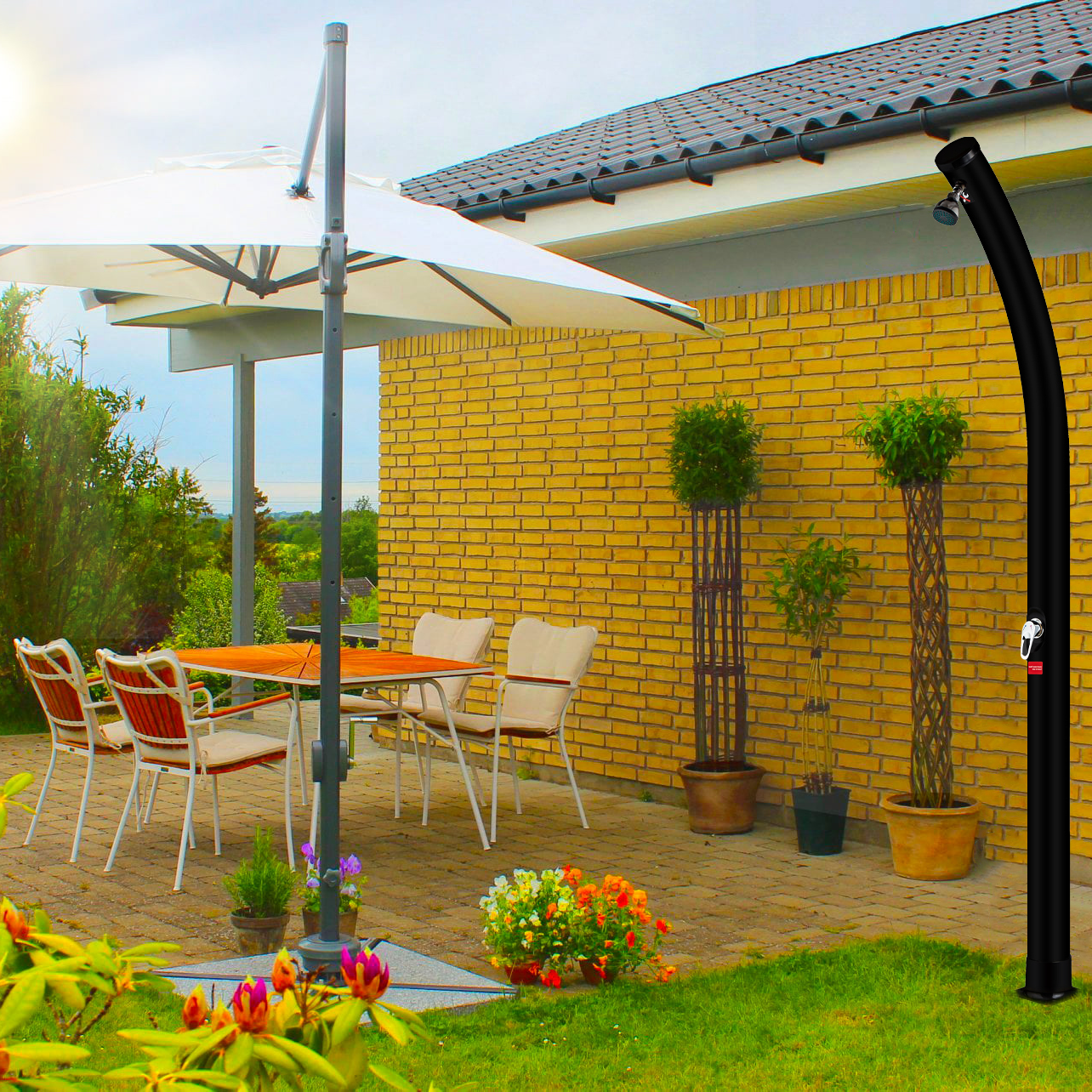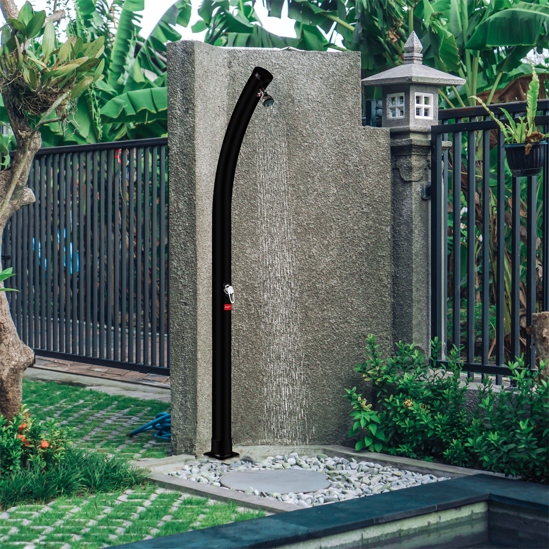 Utedusjen kobles enkelt på eksisterende installasjon, eller på en hageslange med en 1/2" forbindelse. Vannet som er i dusjen blir godt oppvarmet av solen, og etter noen timer i solen vil du kunne ta en ca. ti minutter lang dusj i gratis varmt vann.