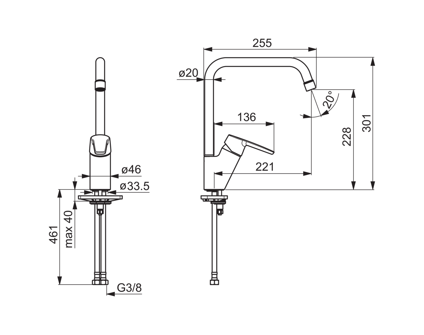 Oras saga kjøkkenarmatur m/høy tut