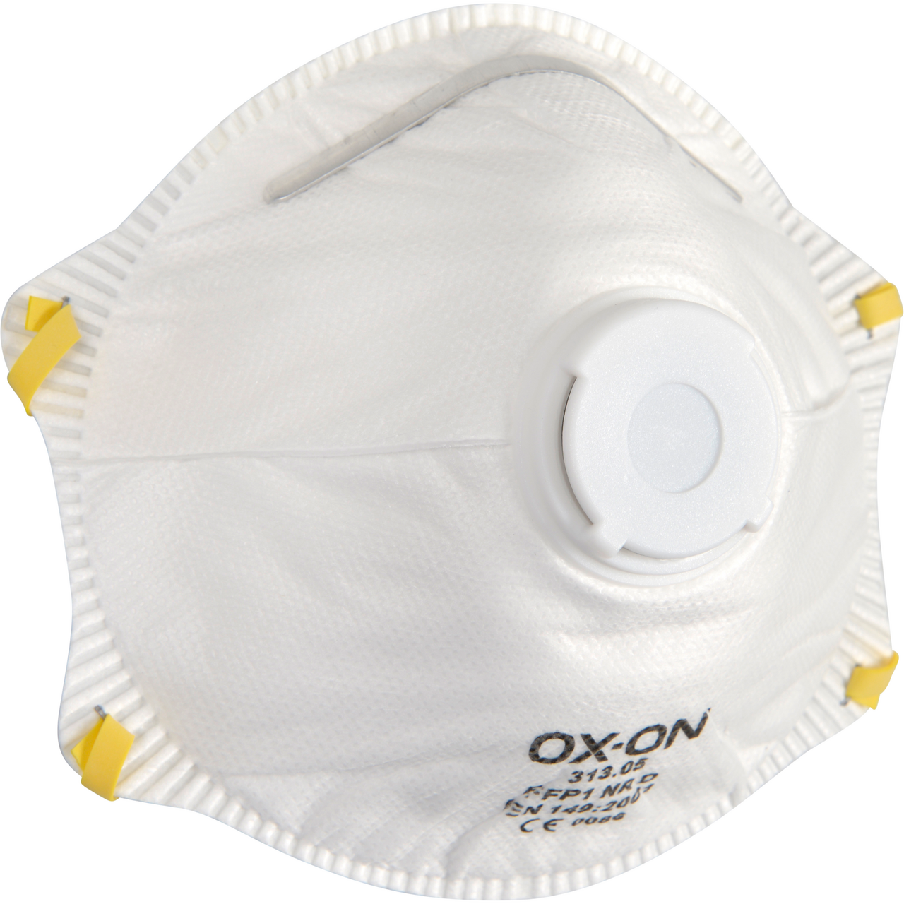 Denne masken fra OX-ON er en sikkerhetsgodkjent engangsmaske med ventil, ideell ved arbeid med mindre farlige partikler og aerosoler.