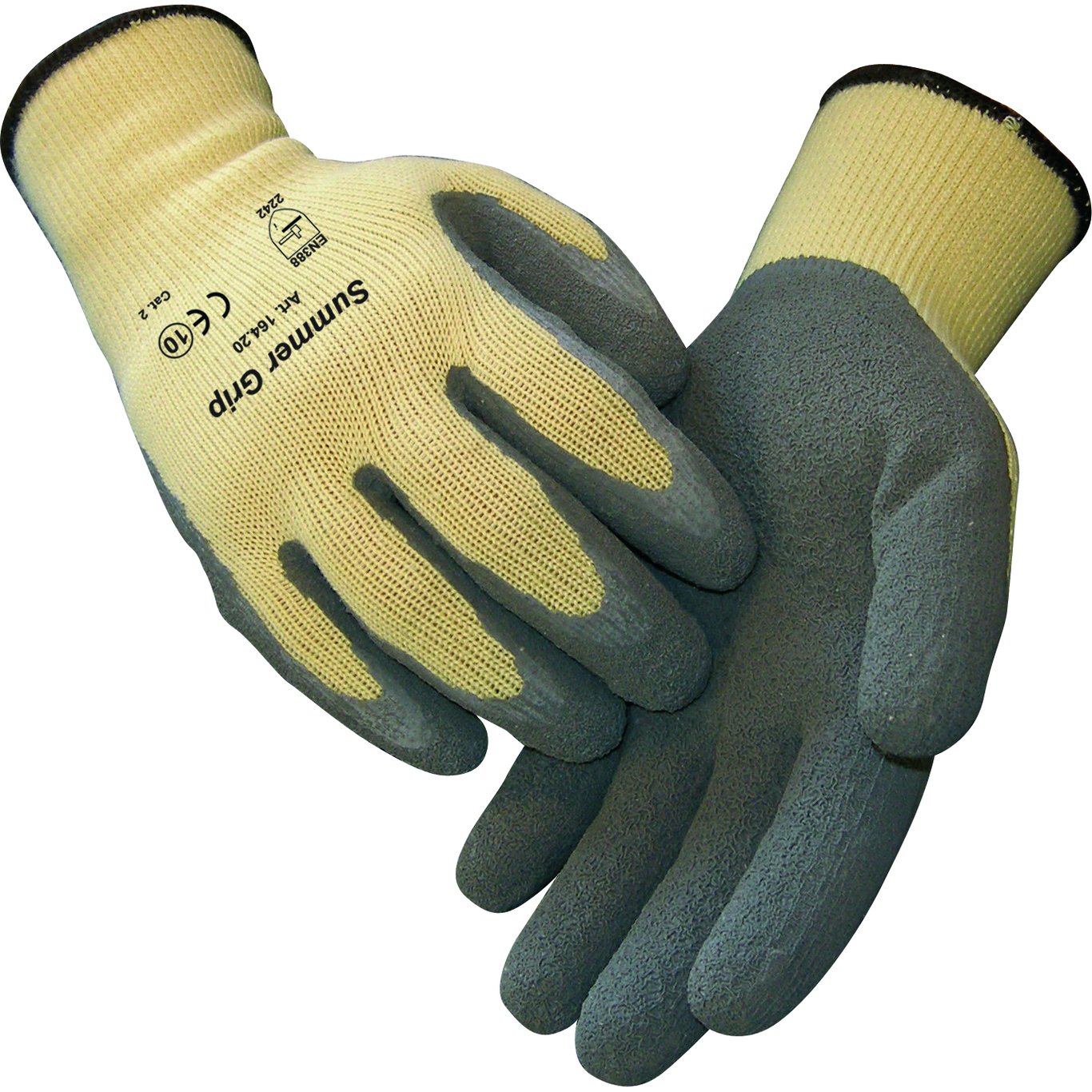 Fingerdyppet strikkhanske i polyester med lateks belegning i håndflate og fingerspisser.